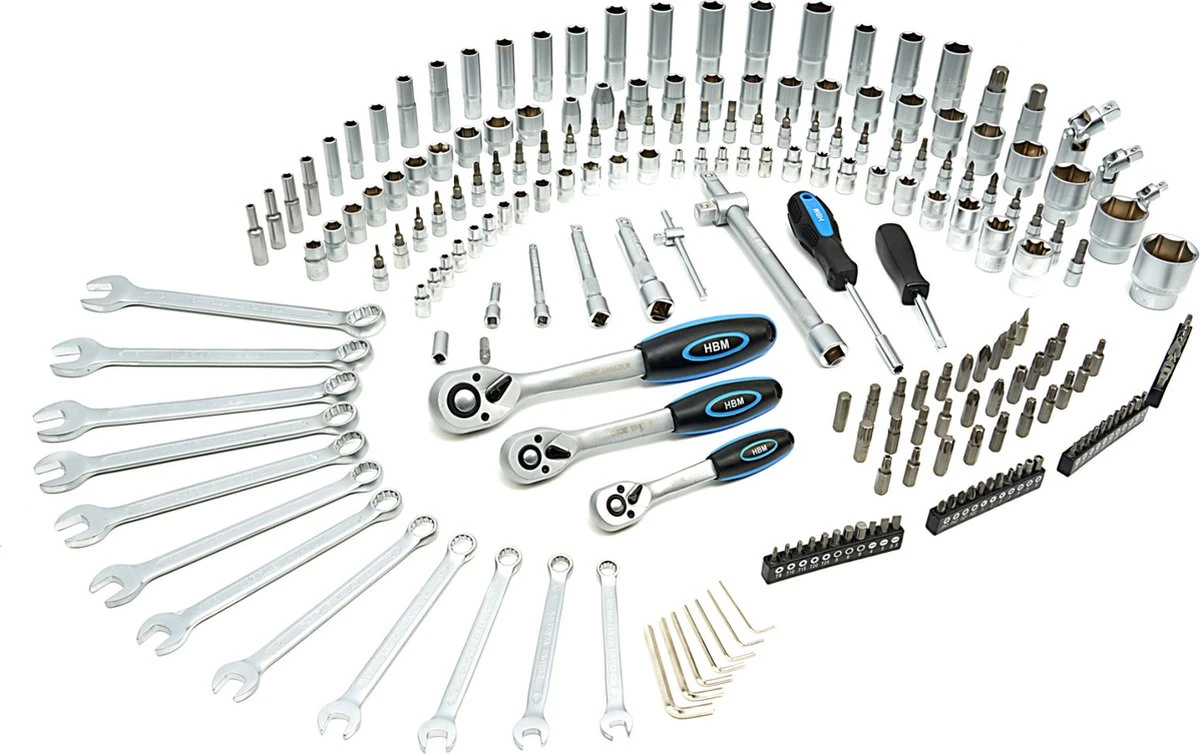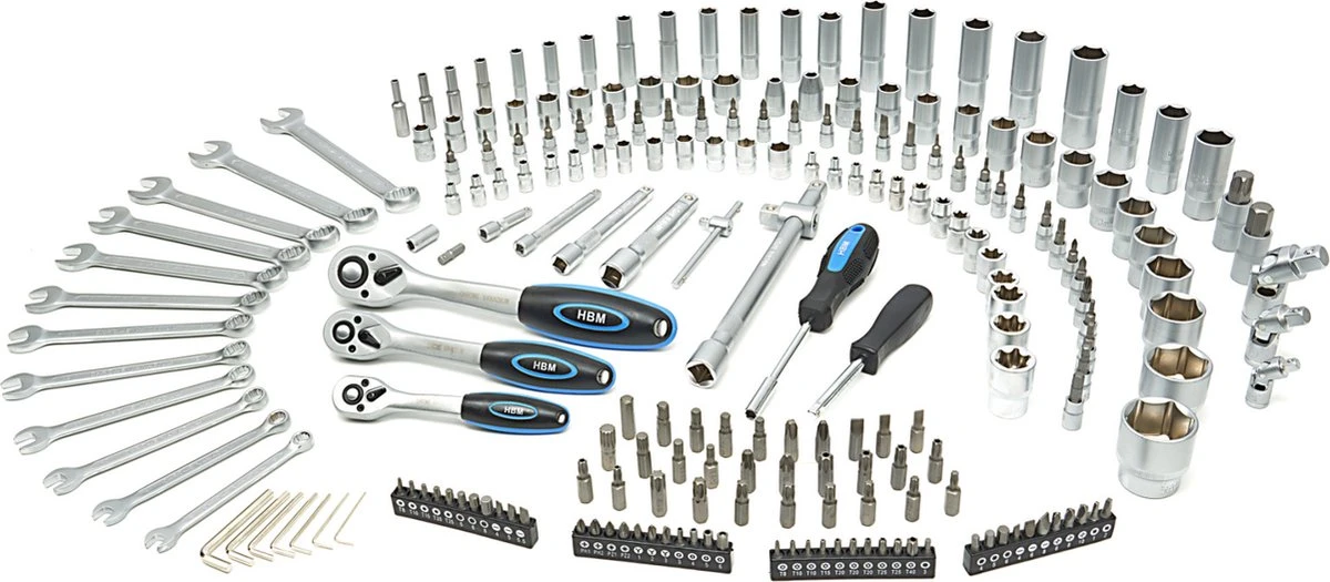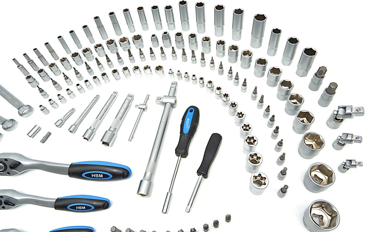 - 13 x 1/4″ doppen: 4/4.5/5/5.5/6/7/8/9/10/11/12/13/14 mm
