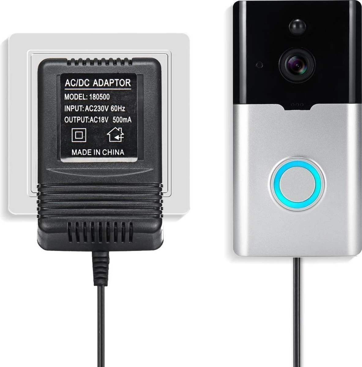 Met deze voeding adapter sluit je eenvoudig een videodeurbel aan op het stopcontact. Hierdoor is het niet meer nodig om de batterijen telkens op te laden.