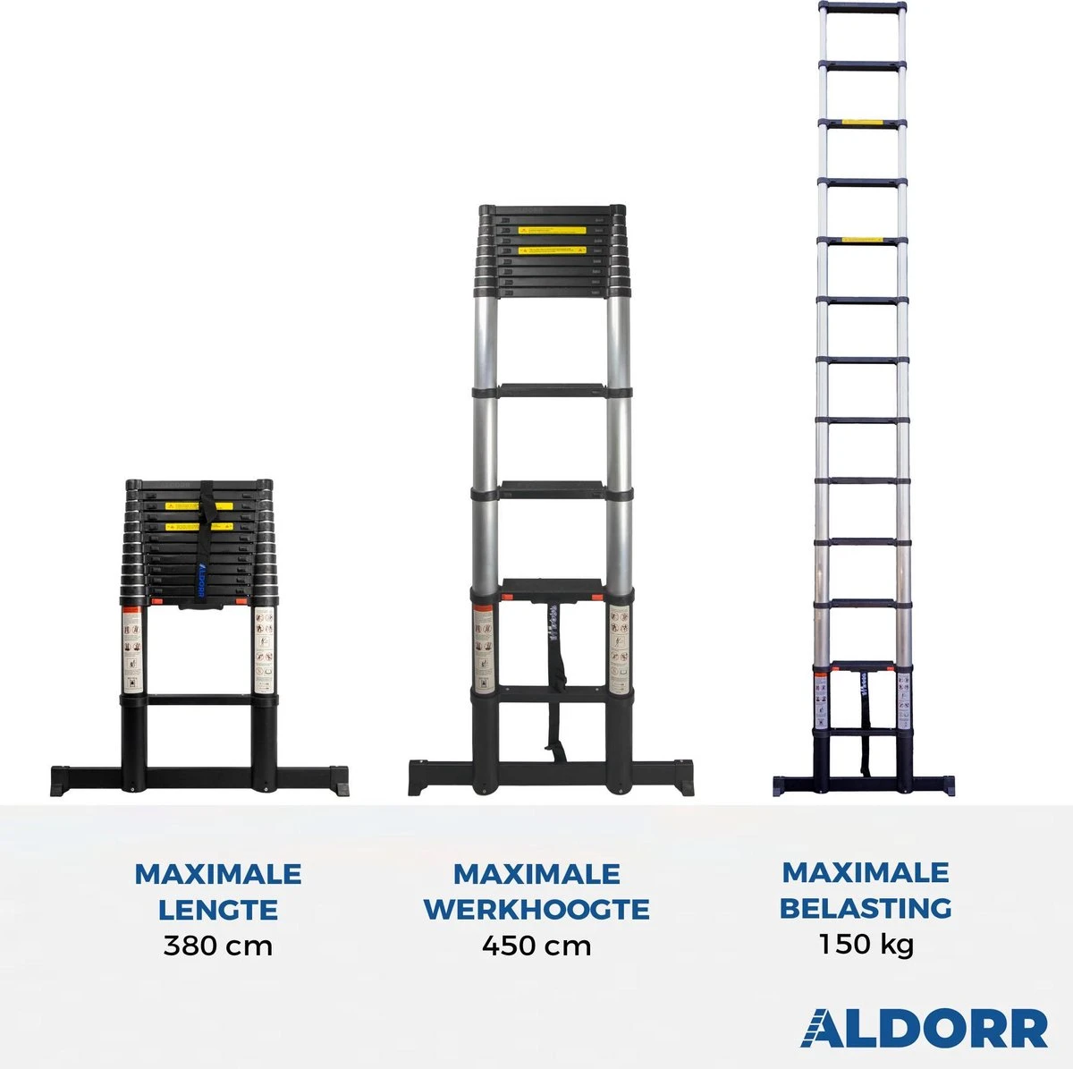 ALDORR Professional telescopische ladder met ALDORR Optigrip™, extra brede treden en nieuwste type soft-closing