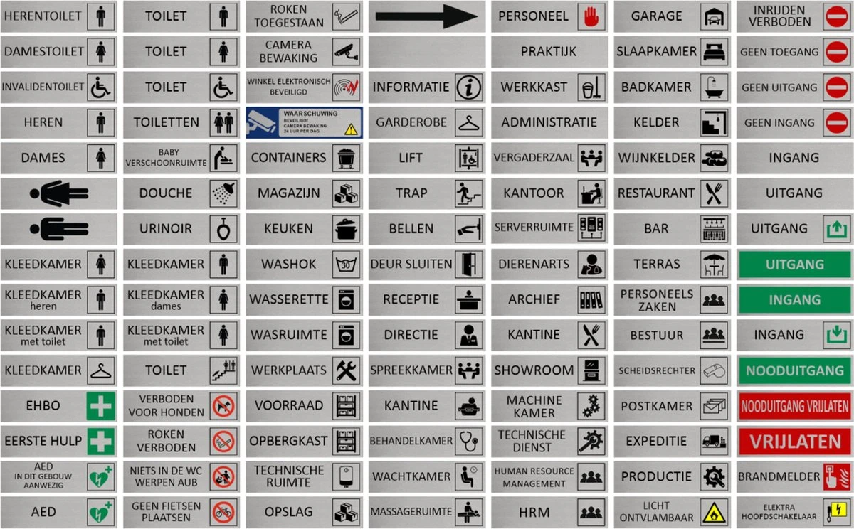 Deurbordjes van zilverkleurig aluminium met tape aan de achterzijde. Deze deurbordjes zijn 165x45mm en ½ mm dik. Deurbordjes zijn zowel binnen als buiten te gebruiken.