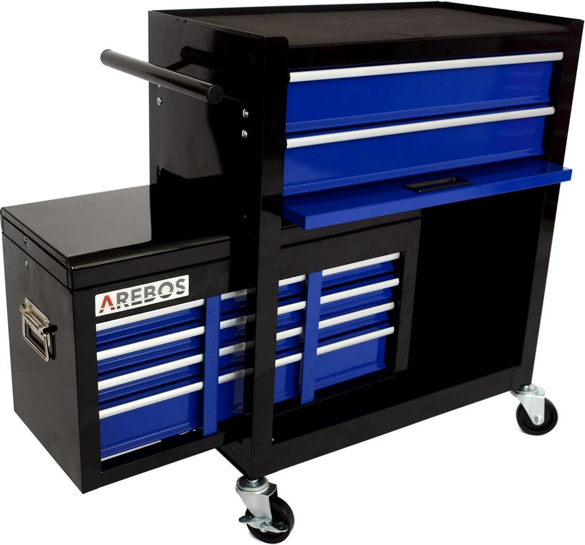 AREBOS Werkplaatswagen – met 8 laden, één inklapbare lade en een kast