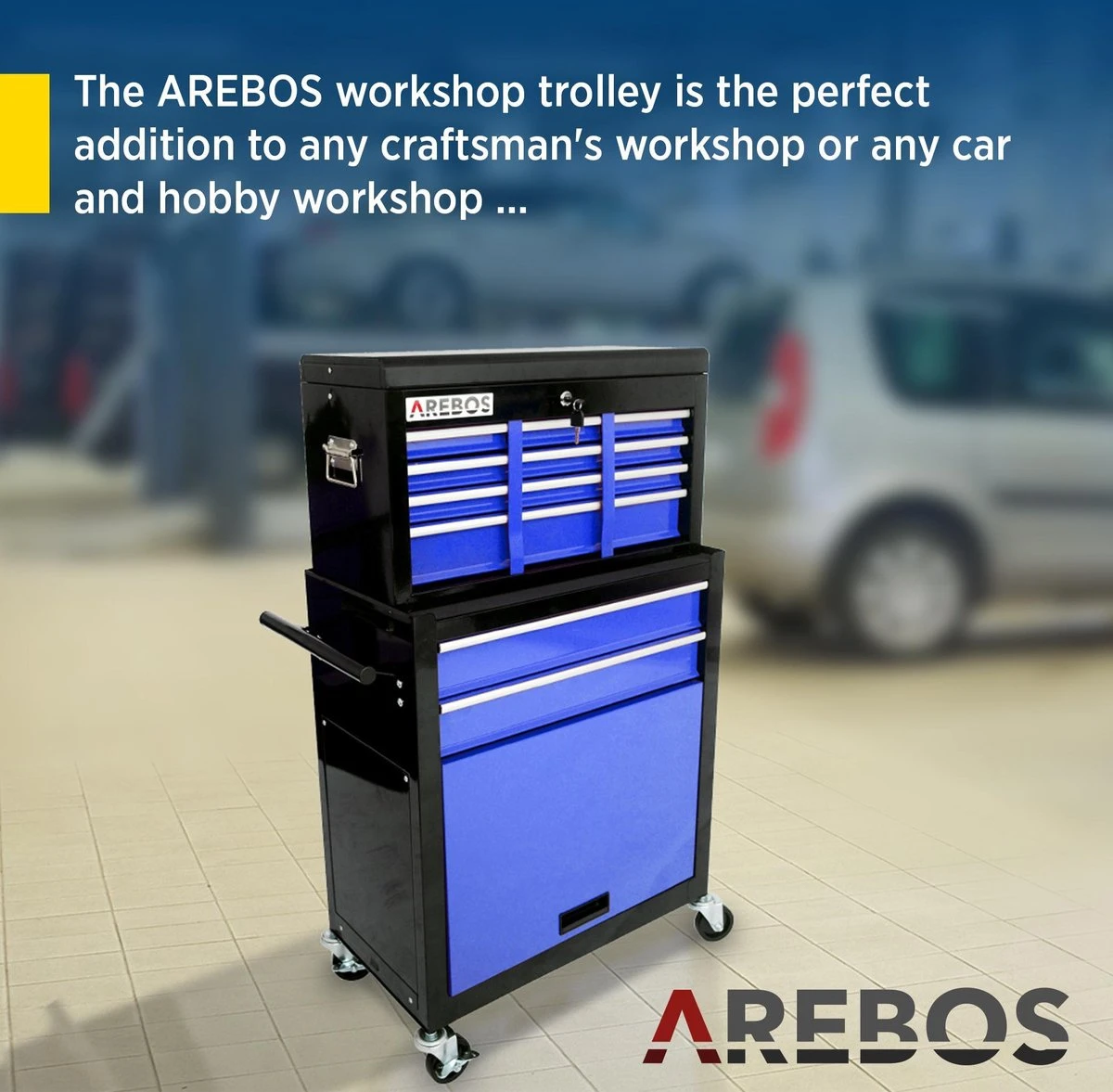 Dan is deze werkplaatswagen van AREBOS echt iets voor u! Het is de perfecte aanvulling voor elk klusjesbedrijf, elke autoreparatiewerkplaats of elke hobbywerkplaats.