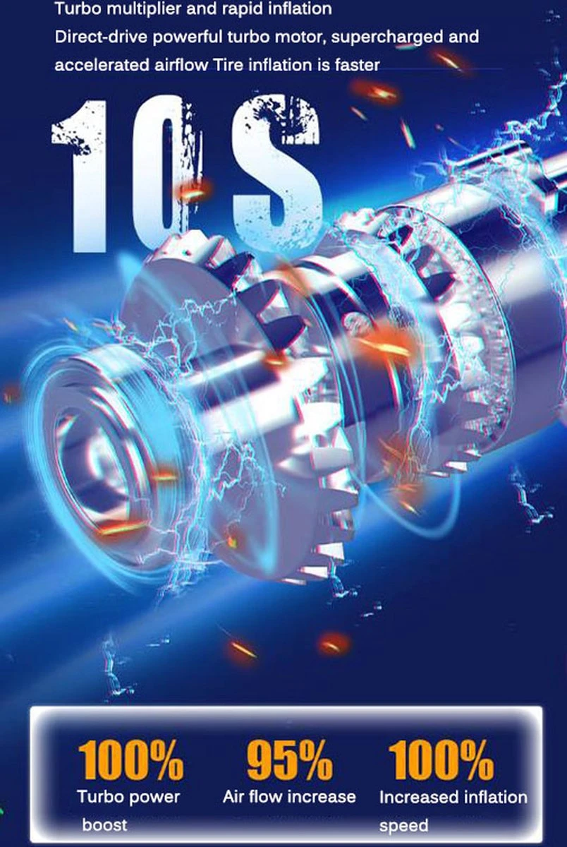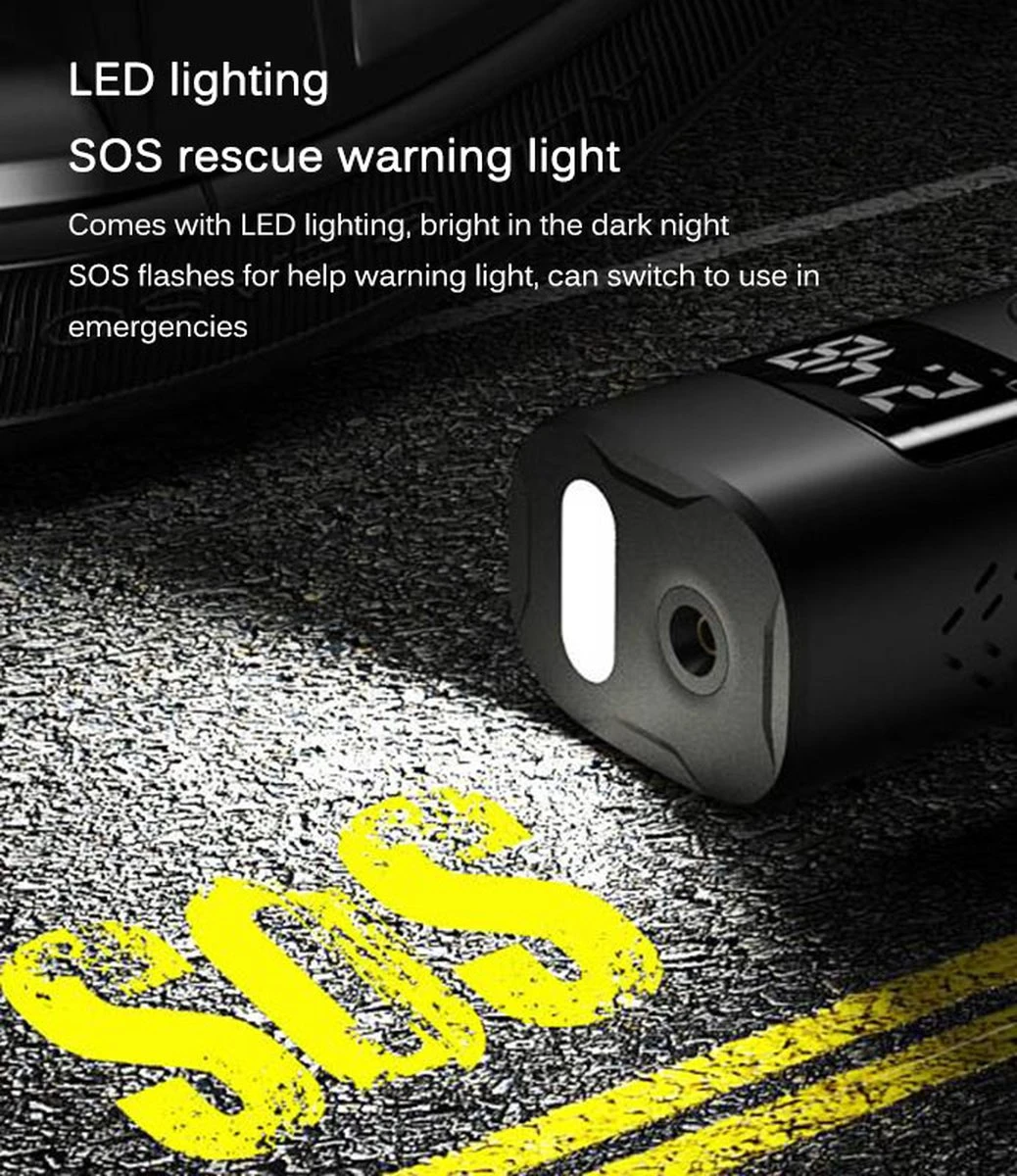 [150 PSI snelle en krachtige inflator] De draagbare luchtcompressor van de bandenpomp is uiterst efficiënt met een krachtige drukoutput, waarmee u de voertuigen en objecten gemakkelijk kunt opblazen. Ingebouwde 6000mAh batterij met extra grote capaciteit maakt aan- en uitzetten met één knop mogelijk zonder het voertuig en een externe stroombron te hoeven starten, voor urenlang stroomloos gebruik!