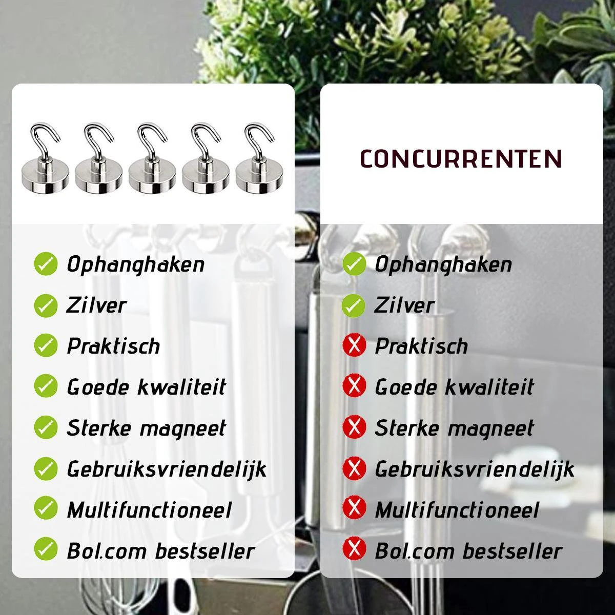 Met deze AWEMOZ magnetische ophanghaak kun je nu alles tot 15 KG ophangen aan magnetische wanden als een whiteboard, koelkast, glasbord, magneetbord, magneetbehang etc. Deze Neodymium ophanghaken hebben een magnetiseringsgraad van N50 en daarmee zijn het nog sterkere ophanghaakjes dan voorheen.