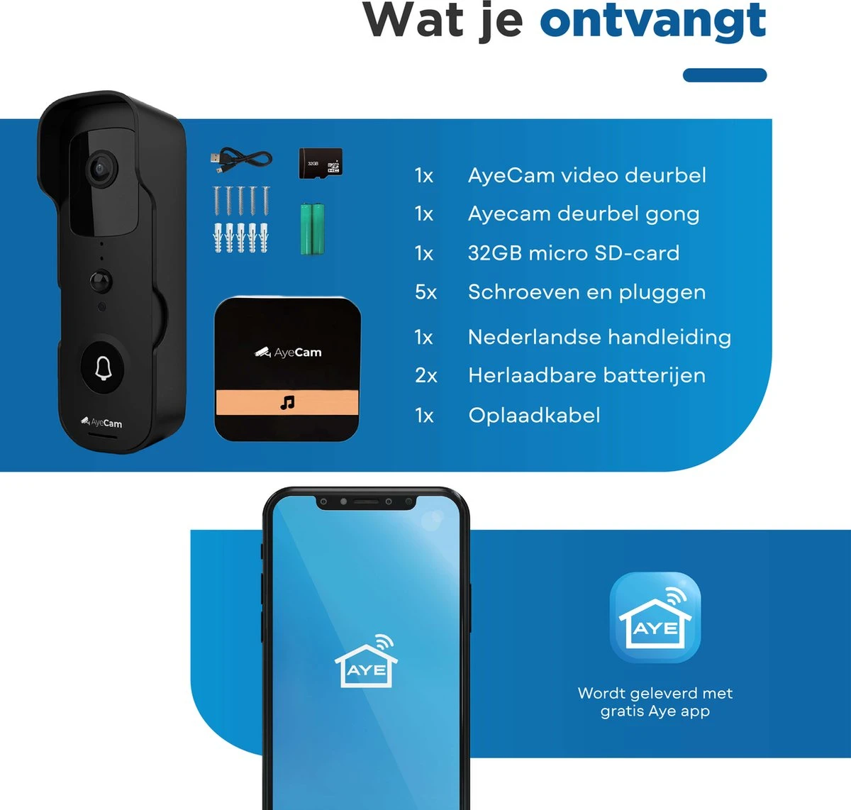 - Zorg voor een veiliger gevoel – Je kunt direct zien wie er aanbelt en kunt bij twijfel eerst spreken via de Aye App met degene voor de deur.