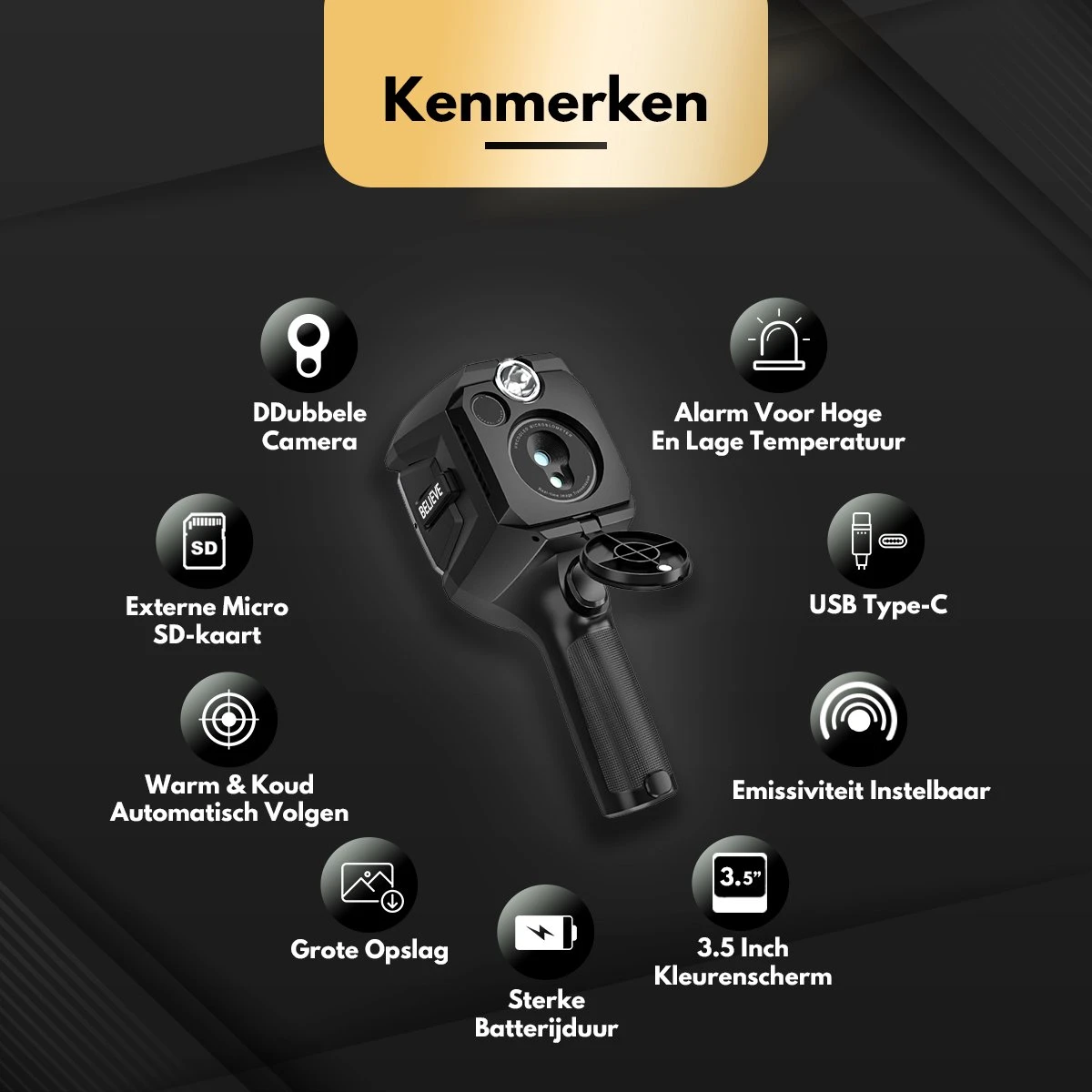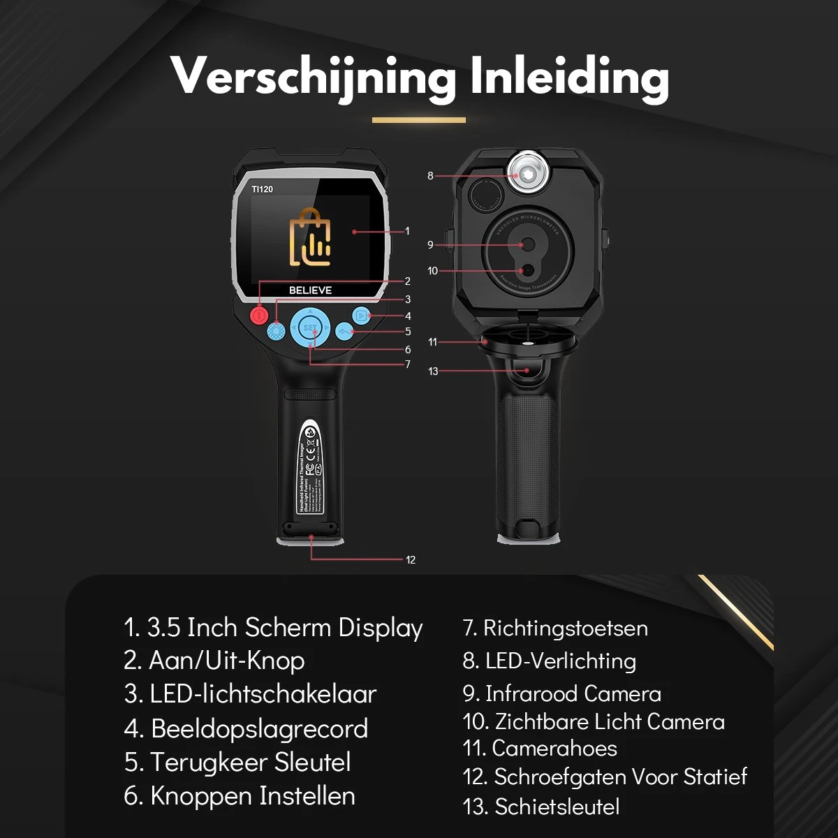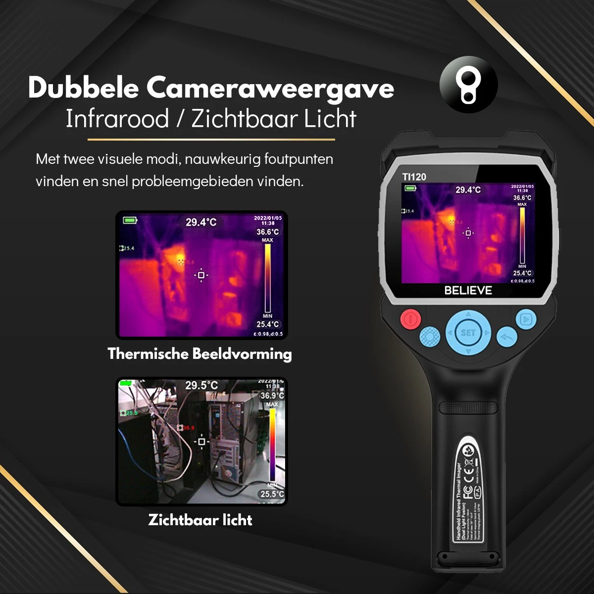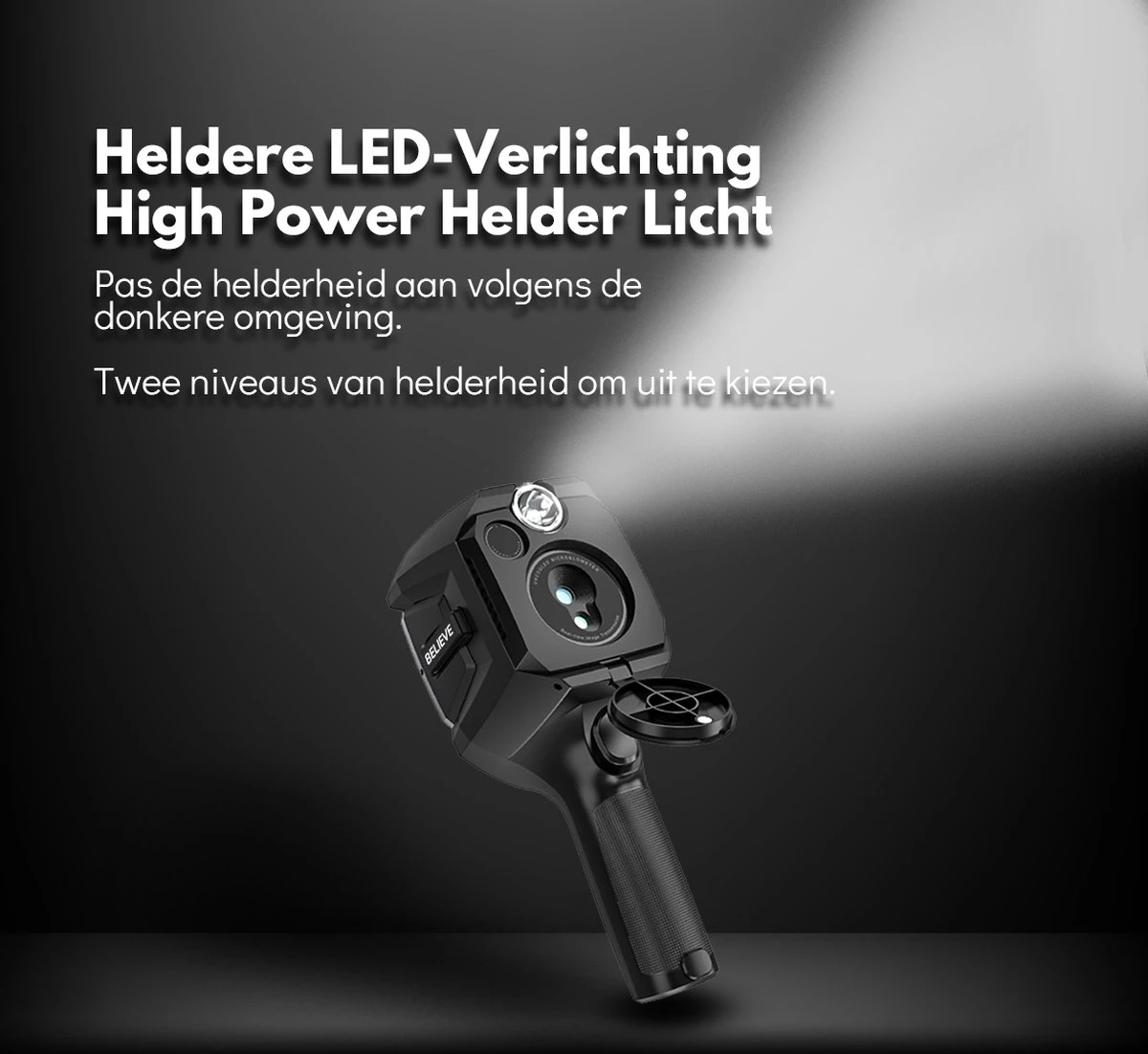 De BELIEVE Warmtebeeldcamera – de ideale oplossing voor het nauwkeurig opsporen van warmtebronnen voor Loodgieters, Elektriciens, Installateurs en Monteurs. De warmtecamera is geschikt voor elke sector en omgeving en is perfect voor het opsporen van warmteverlies in huizen en panden.