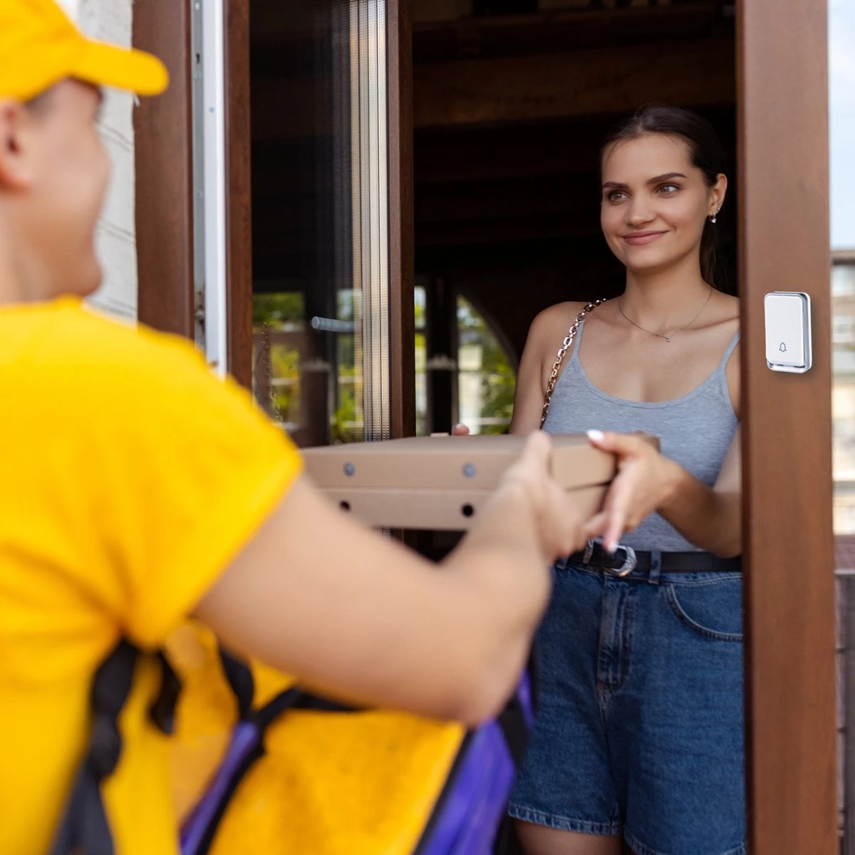 - De draadloze deurbel wordt geleverd met schroefjes en dubbelzijdige tape