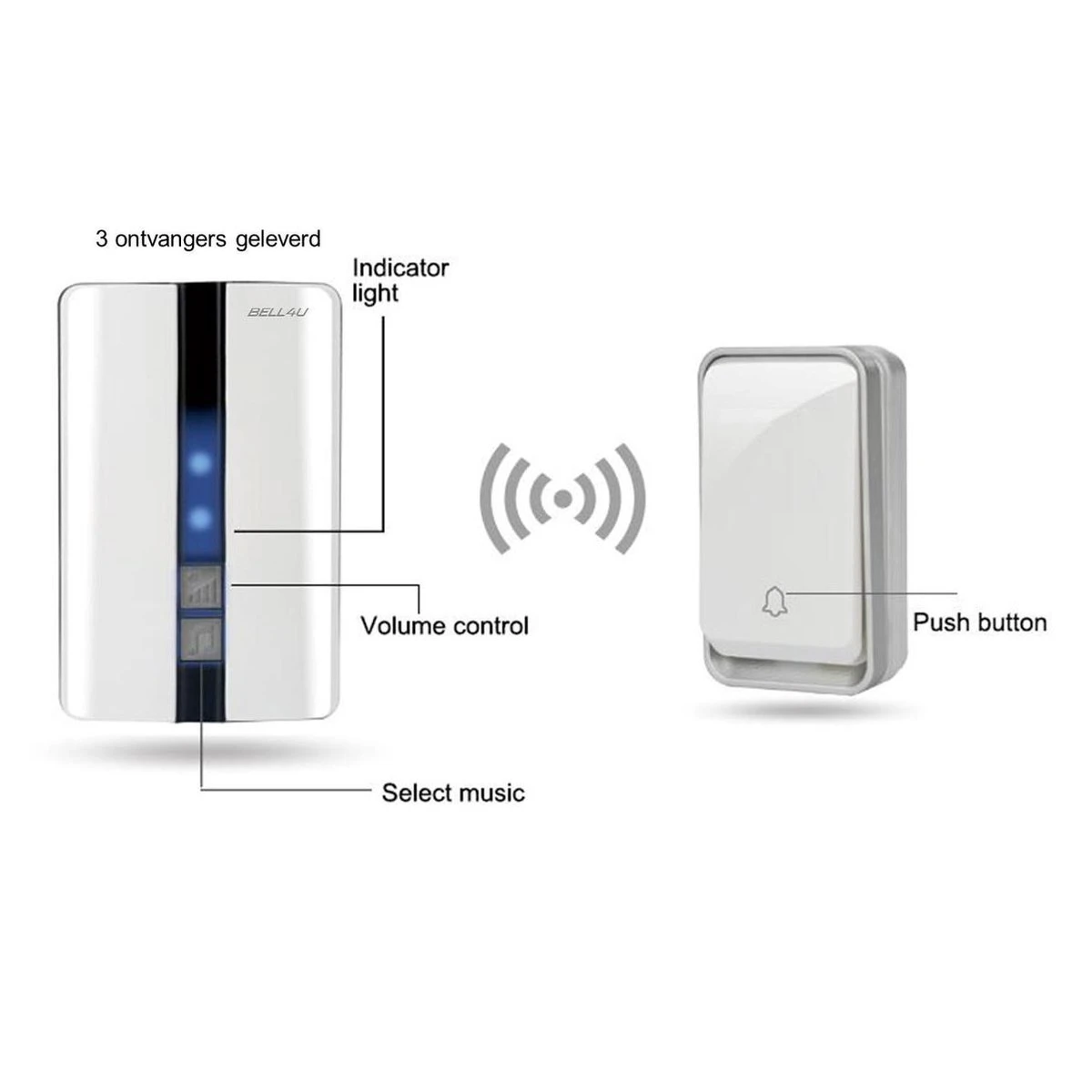- De deurbel is draadloos en kan een afstand van minimaal 70 meter overbruggen