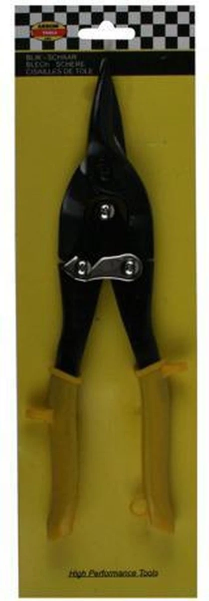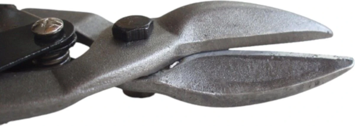 Blikschaar met hefboomoverbrenging. Voor het kort recht en figuur knippen met grote radius.