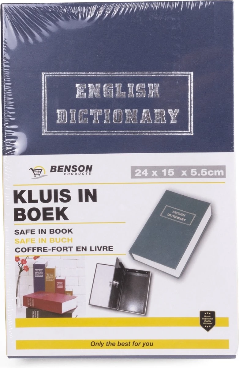 In steeds turbulenter wordende tijden moet men nieuwe strategieën bedenken om zijn waardevolle spullen te beschermen. Een boekenkluis kan hier wat veiligheid bieden, vooral als de kluis gecamoufleerd is als een doodnormaal, onopvallend woordenboek. In 101% van de huishoudens ligt namelijk vermoedelijk wel een Engels woordenboek stof te vangen. Het ding is zo alledaags dat echt niemand meer met de wenkbrauwen fronst als hij er ergens een ziet liggen. En dat is ook prima zo, want iets dat zo gewoon is wordt door niemand meer preciezer bekeken – ook niet door eventuele inbrekers. Een dergelijke duistere figuur zou namelijk eerst naar een kluis gaan zoeken en vervolgens door laden en kasten gaan woelen. En als het om boeken ging, dan zou hij naar waardevolle boeken gaan zoeken, maar gegarandeerd niet naar een gehaat relict uit zijn middelbare schooltijd. En zo is de boekenkast een grappige mogelijkheid waardevolle zaken in eigen huis betrouwbaar te verstoppen.