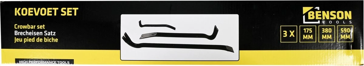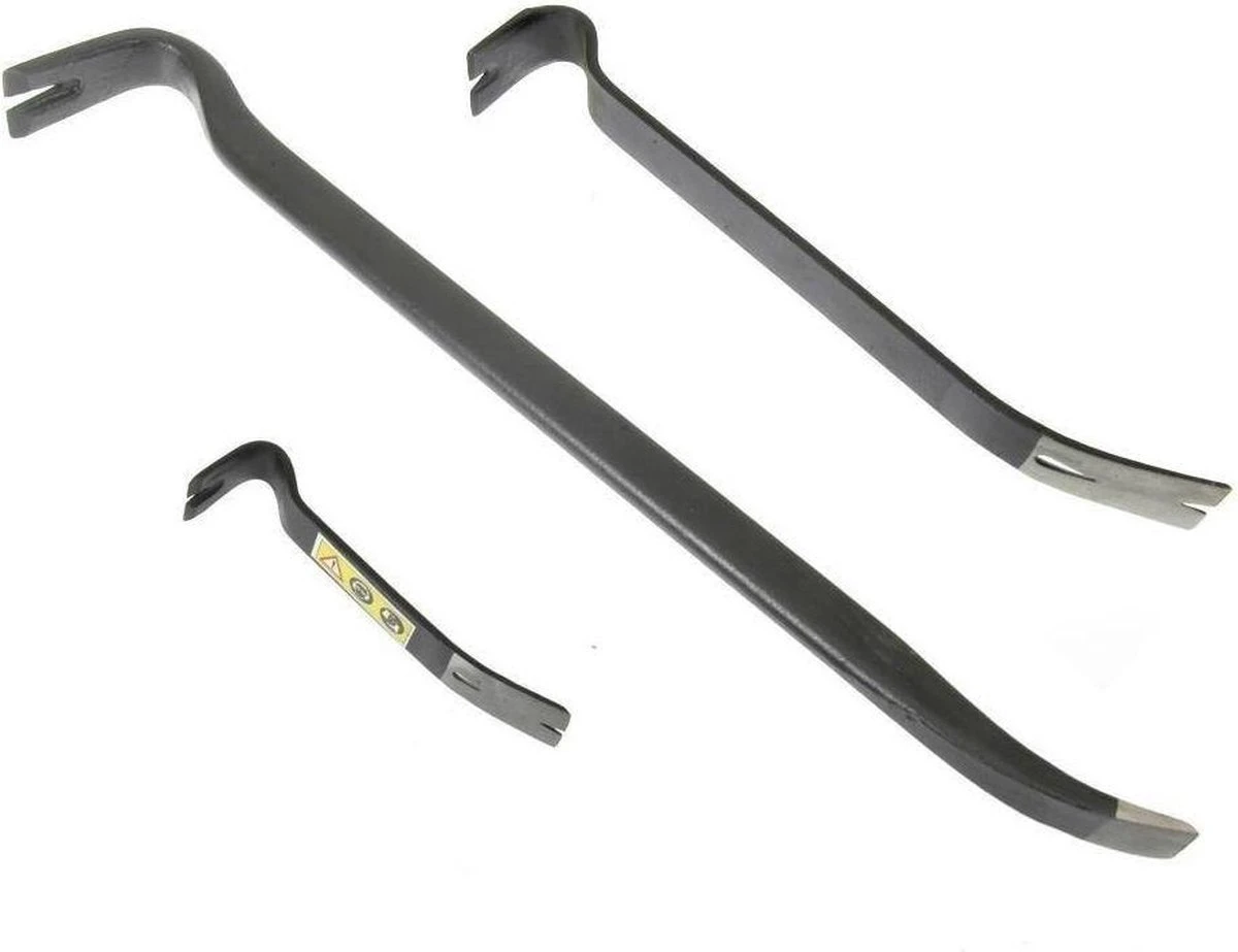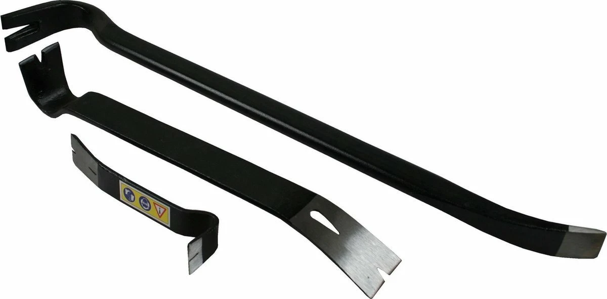 Zoekwoorden: Koevoet, Koevoeten, Breekijzer, Breekijzerset, Staal, 3 delig, Zwart, Hulpmiddel, Openen, Scheiden