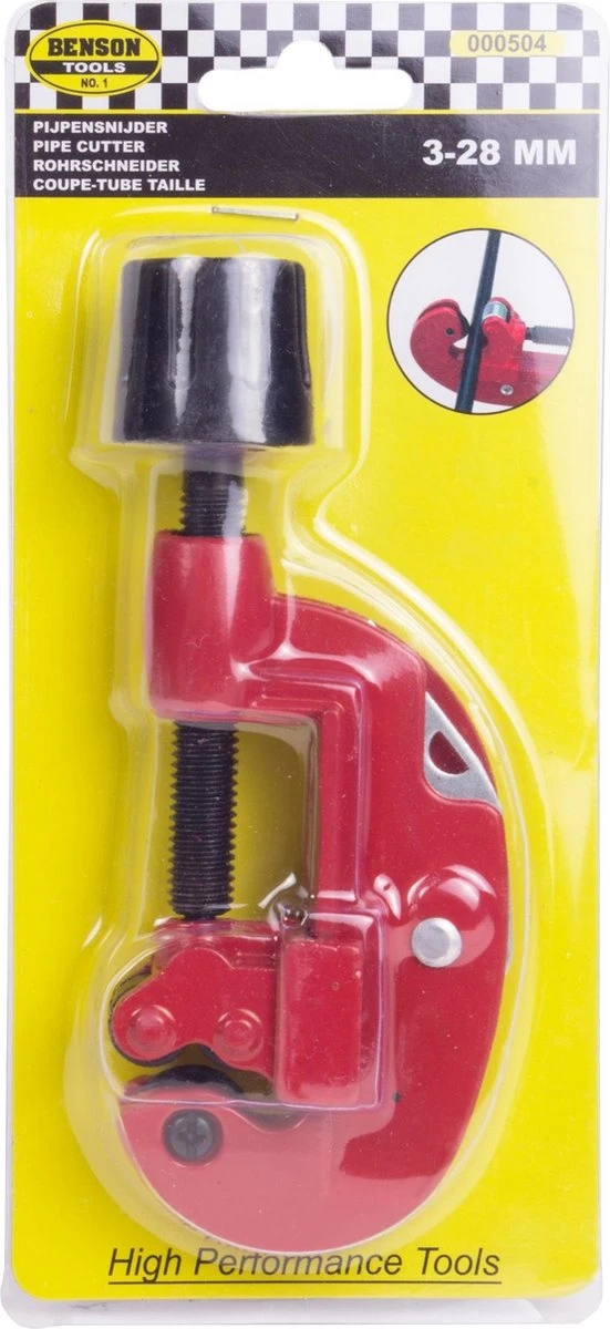 Voor het snijden van aluminium, koper en dunwandige buis. Compleet met pijpfrees. Rood gelakt.