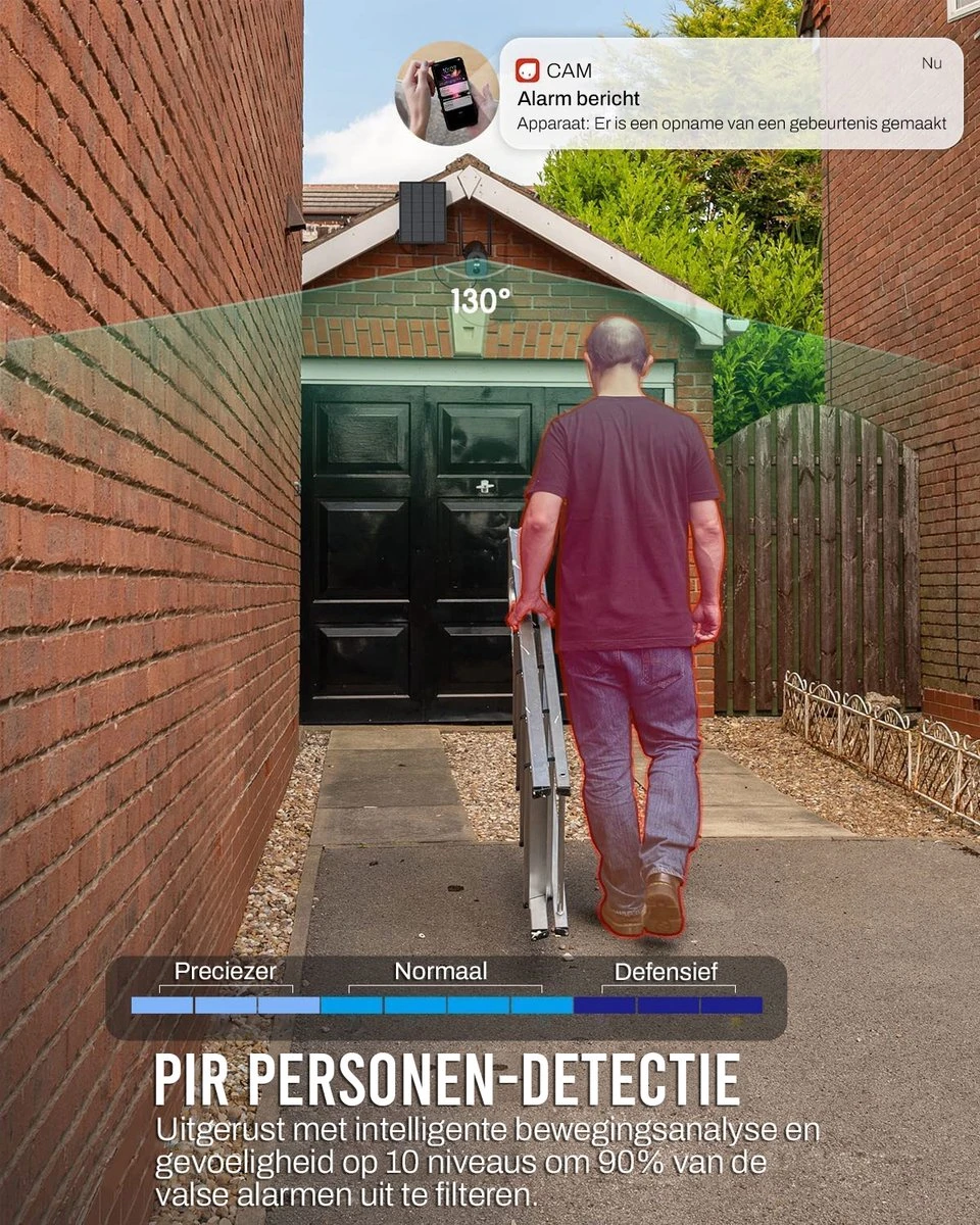 - 【PIR intelligente detectie】 Deze wifi-bewakingscamera detecteert menselijke bewegingen nauwkeurig en stuurt je onmiddellijk alarm, de audio- en video-opnames worden synchroon opgenomen, zodat je alle situaties ter plaatse perfect kent. Na het inschakelen van de geluids- en lichtalarmfunctie activeert de bewegingsdetectie het sterke witte licht en laat de sirene geluiden om ongenode gasten automatisch te verdrijven en alle criminele mogelijkheden te elimineren.