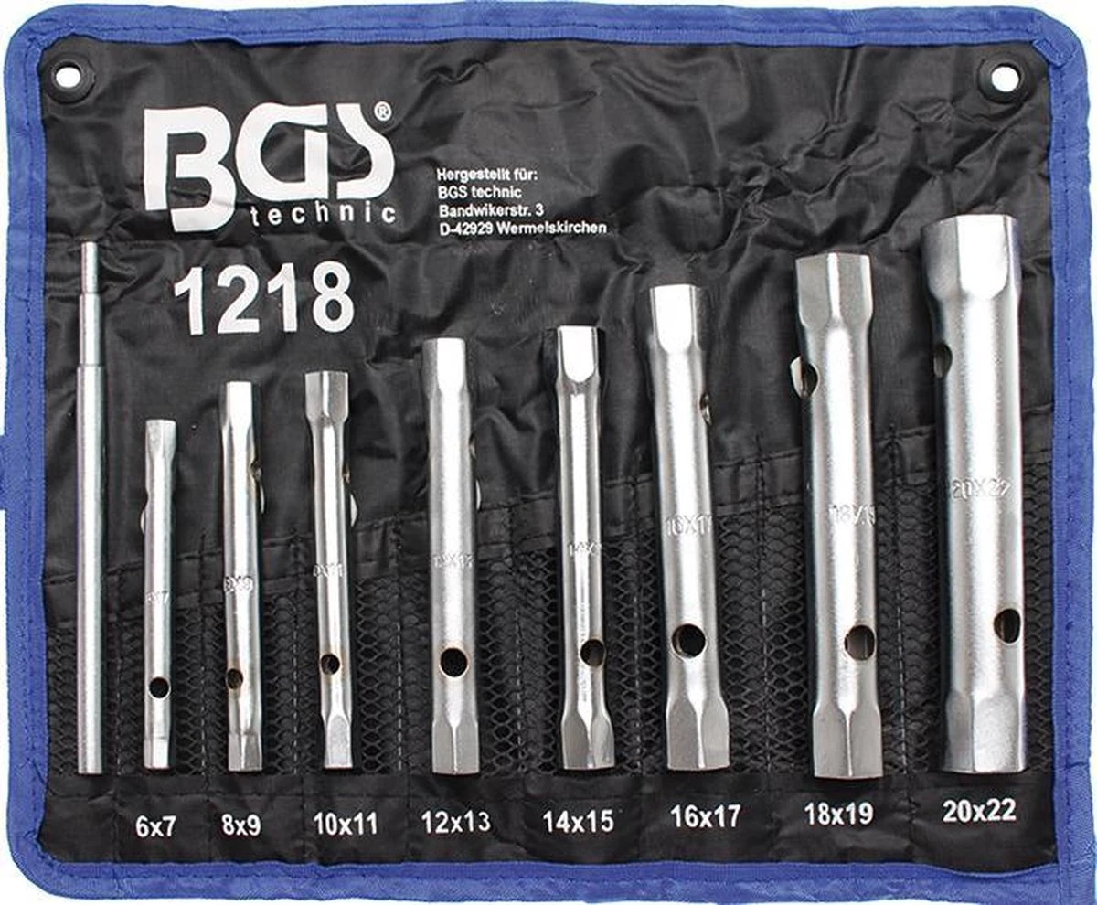 BGS technic Pijpsleutelset | 6 x 7 – 20 x 22 mm | 9-dlg (1218) oppervlakte:mat verchroomdGewicht:0.96 kgBreedte:8 cmHoogte:8 cmLengte:21 cm