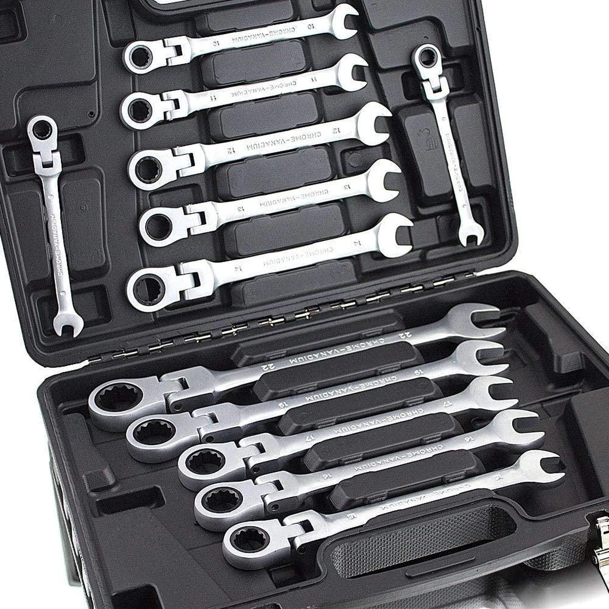 1 x scharnier-ratelsleutel: 8mm, 9mm, 10mm, 11mm, 12mm, 13mm, 14mm, 15mm, 16mm, 17mm, 19mm, 22mm
