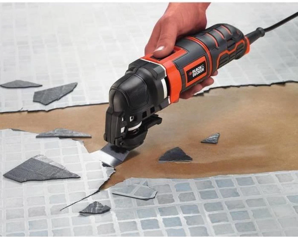 De BLACK+DECKER MT300KA-QS Oscillerende Multitool met Superlok(TM) sleutelvrije accessoirewissel. Eenvoudiger dan elke vergelijkbare machine. Sneller klaar met uw klus en zonder gebruik van een inbussleutel. Robuuste body, ontworpen voor een lange levensduur en comfortabel gebruik. Slank ontwerp van de handgreep en voorzien van softgrip voor de perfecte balans tijdens langdurig gebruik. 10.000-22.000 t.p.m. variabele snelheid biedt de optimale controle tijdens elke klus. De schuuraccessoire heeft geïntegreerde stofafzuiging, voor een schonere werkomgeving. Inclusief handige opbergkoffer en verschillende accessoires.