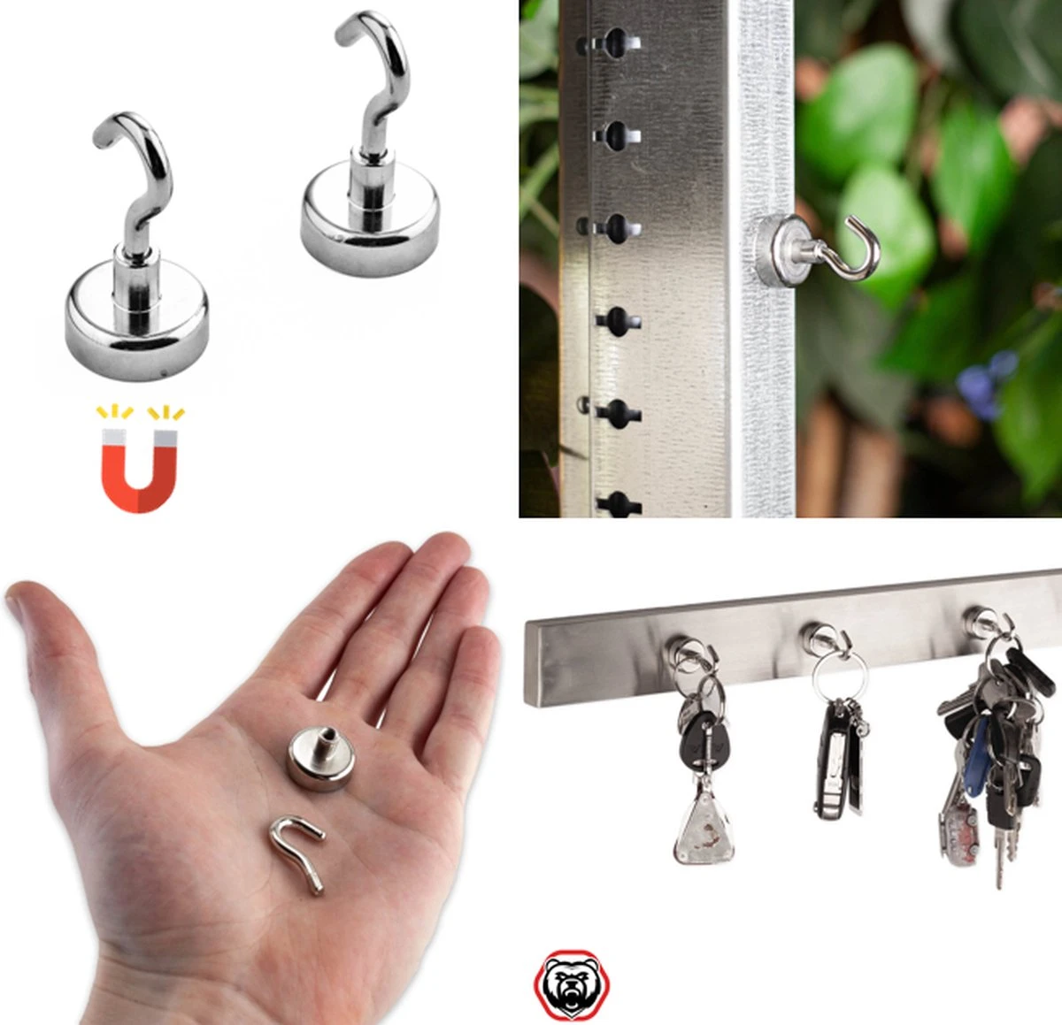 Deze super sterke Magnetische haakjes van Brute Strength ® zijn onmisbare items in bijvoorbeeld uw keuken, schuur of klushoek!