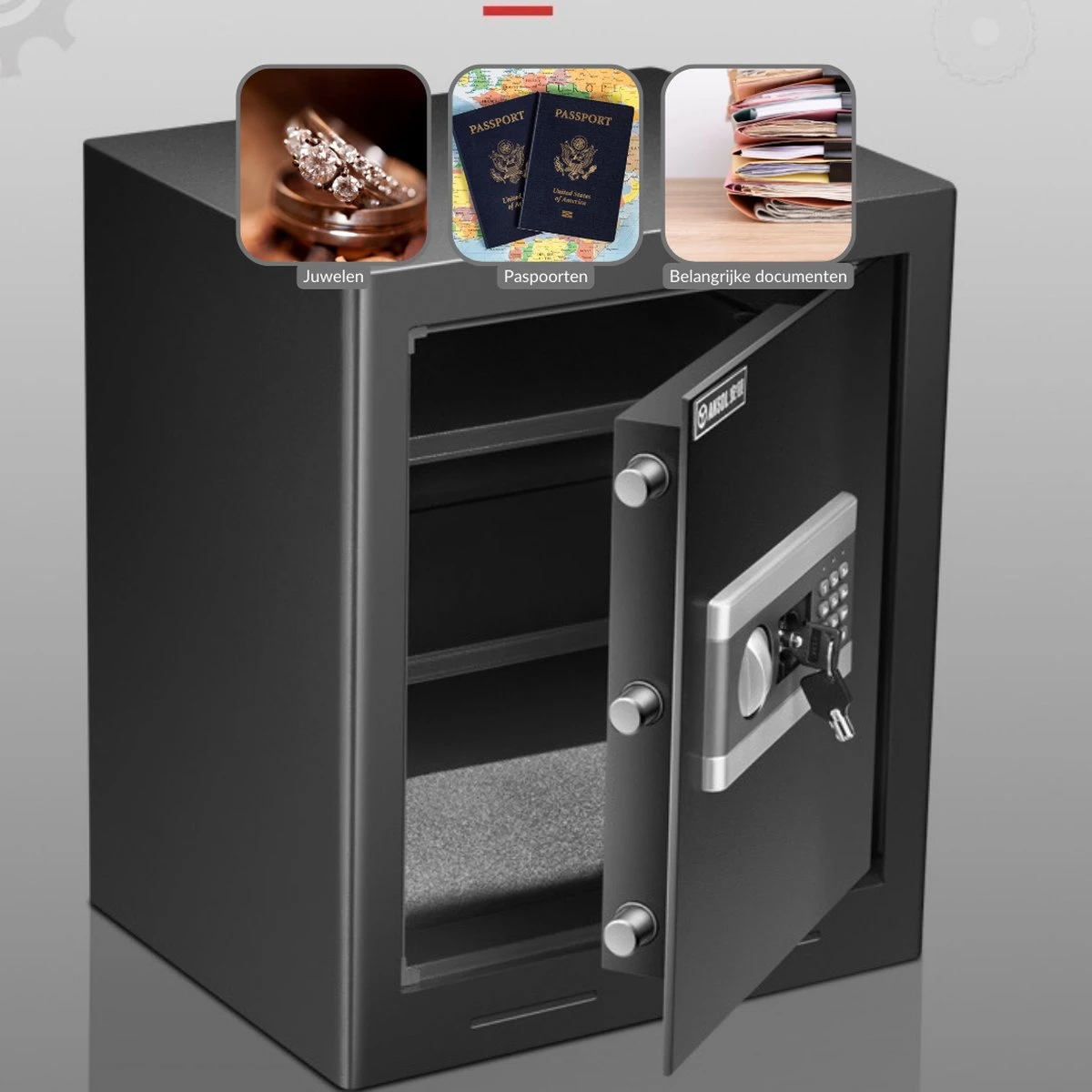 1 x Brandwerende kluis met digitaal codeslot en sleutel
