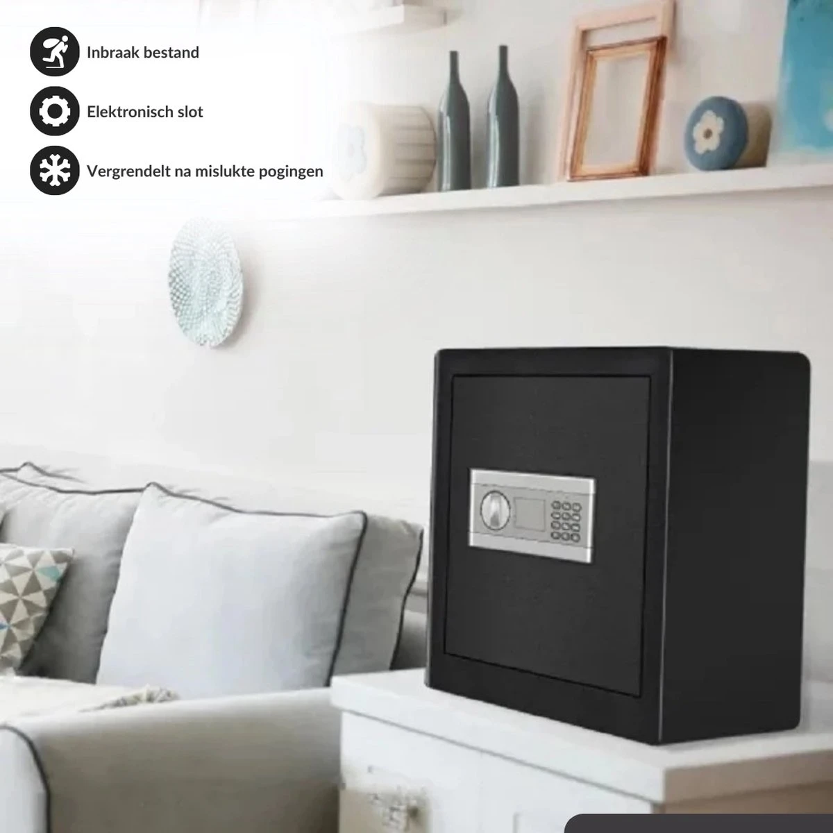 Deze minimalistisch ontworpen kluis van Buxibo is hetgeen wat je zoekt. De kluis heeft een minimalistische uitstraling en is daardoor niet opvallend. Dit zorgt ervoor dat het een aanvulling is op de veiligheid van je persoonlijke waardevolle spullen.