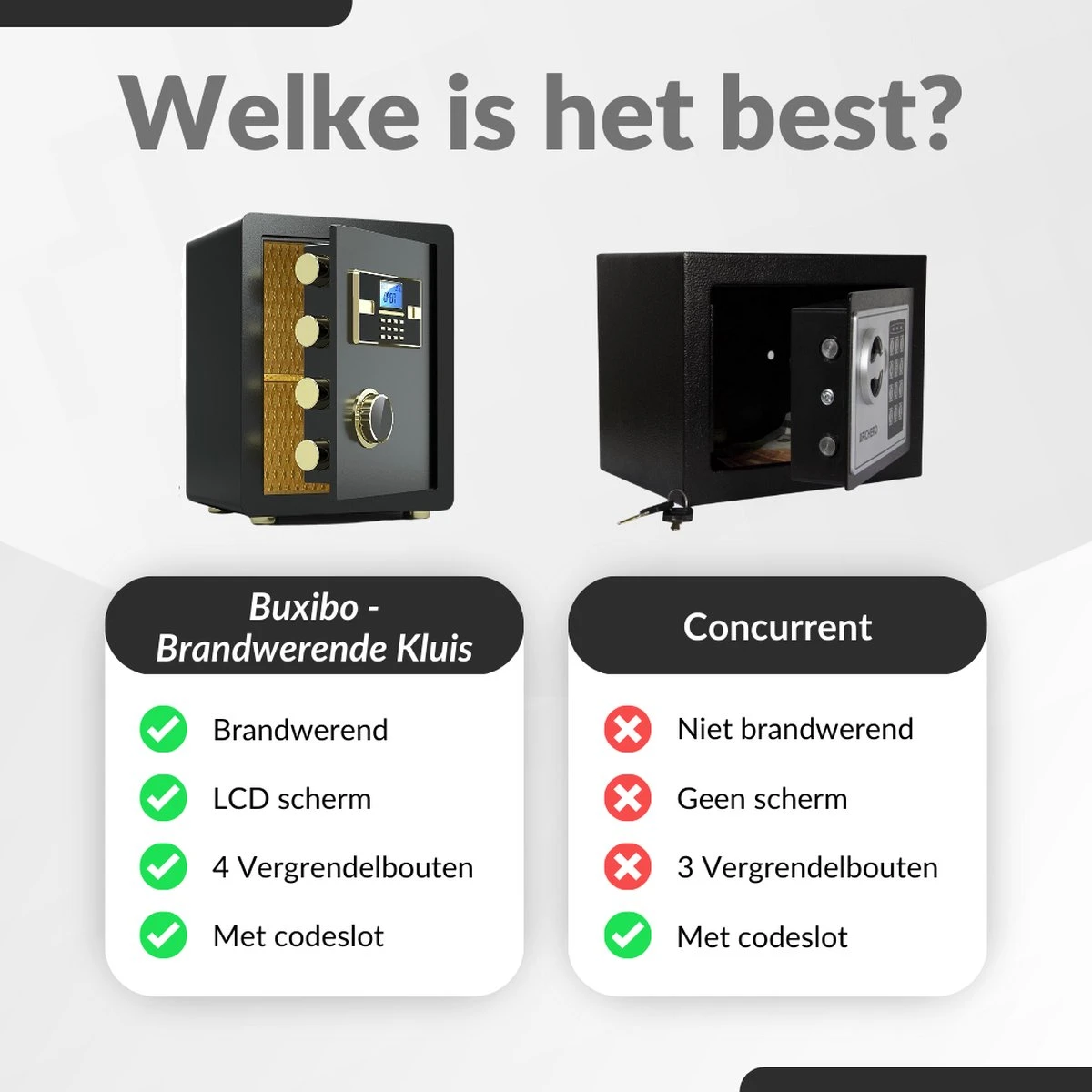 Buxibo – Brandwerende Kluis Huis – Brandkast – Met Digitaal Codeslot, Cijferslot & Sleutel – Metaal – Zwart