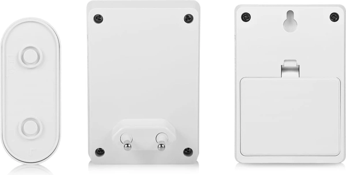 De beldrukker werkt op de meegeleverde CR2032 batterij en kan makkelijk geïnstalleerd worden bij elke deur. De twee deurbellen kunnen ook overal in huis geplaatst worden. Deze set bestaat uit een plug-in deurbel, deze past in elk stopcontact, en een draadloze en draagbare deurbel. Dankzij het bereik tot 100 meter kun je bijvoorbeeld een deurbel op zolder plaatsen en een meenemen in de tuin. Zo mis je geen enkele bezoeker.