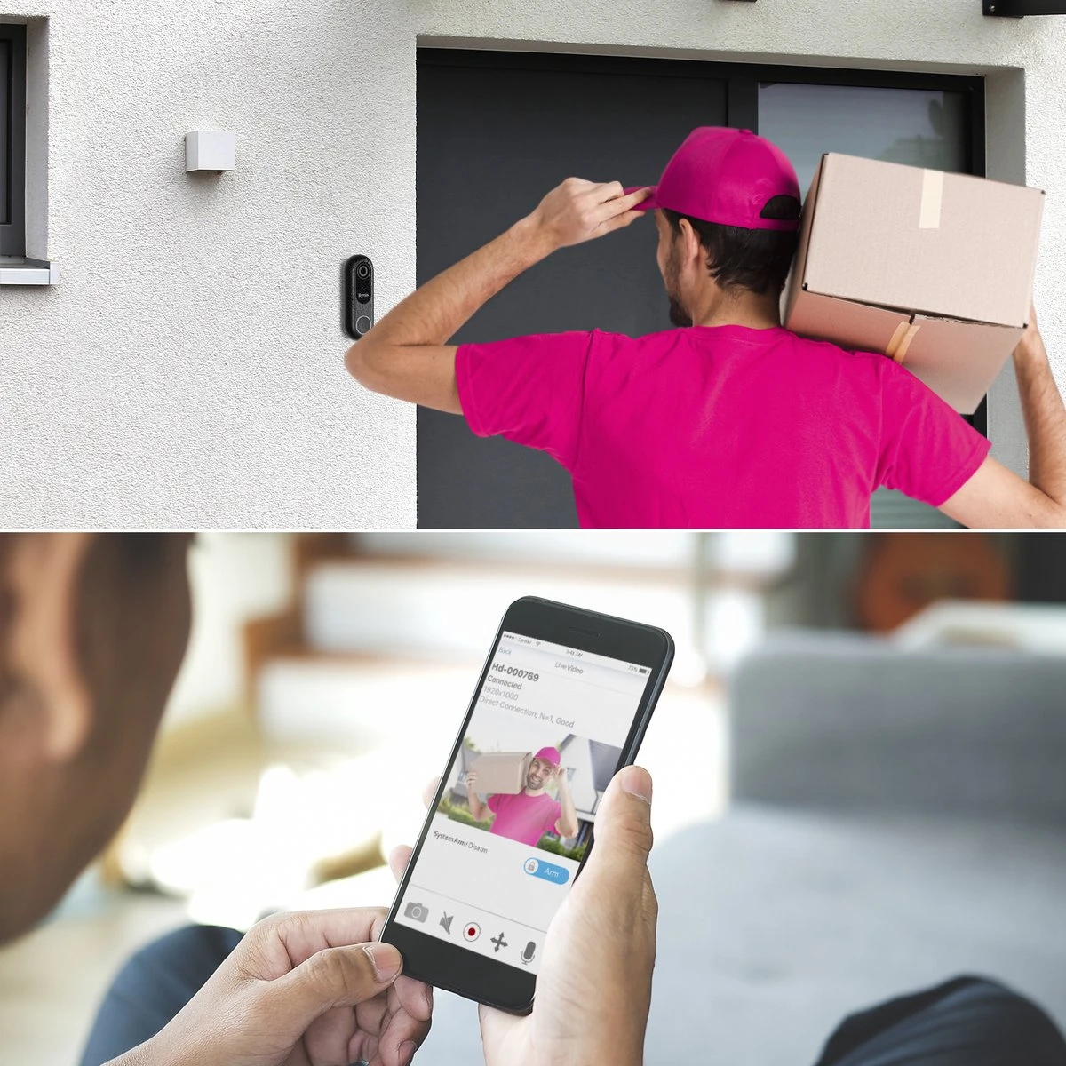 Je krijgt een melding op je smartphone of tablet wanneer iemand aanbelt. Accepteer de oproep en zie direct wie er voor je deur staat. Daarnaast kun je praten met bezoekers om bijvoorbeeld te vertellen dat je niet thuis bent of een pakketje bij de buren afgeleverd mag worden.