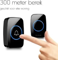 Draadloze Deurbel Set – Met Ontvanger Op Batterij – Bereik 300 Meter – IP65 Waterdicht – Zwart