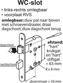 Starx WC–Slot – Badkamerslot – Deurslot Binnendeur – Slot Met Voorplaat Zilver RVS – 50 X 63 Mm
