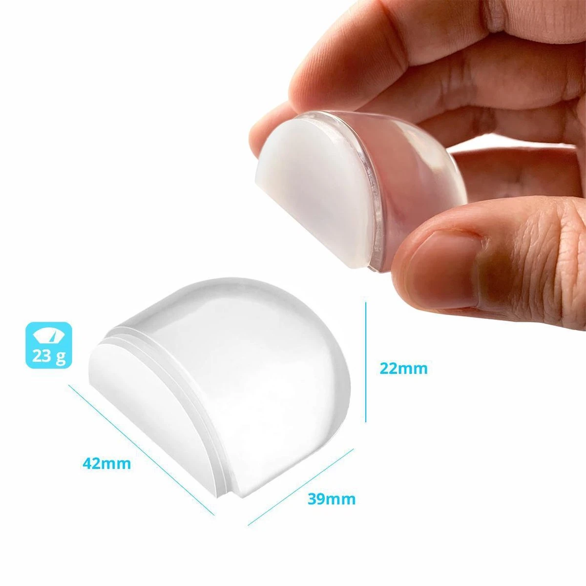 Dankzij het kleine formaat en de transparante kleur zijn deze deurstoppers nauwelijks zichtbaar en passen deze perfect bij uw meubels.