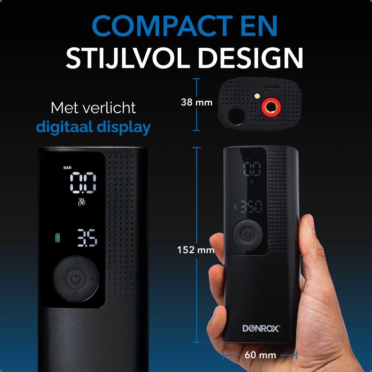 Met deze compacte en lichtgewicht 3-in-1 compressor heb jij overal en altijd een multifunctionele, USB oplaadbare luchtcompressor bij de hand. De in zakformaat vormgegeven Donrox Ride F522 is een elektrische bandenpomp met digitale bandenspanningsmeter en zaklamp. Ideaal om voor vertrek en onderweg de banden van je fiets, auto, motor of ander voertuig op spanning te brengen.