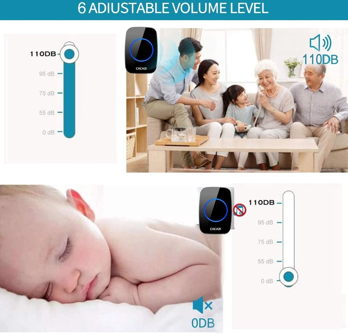 Groot bereik tot 300 m in open ruimte: zorg ervoor dat u nooit belangrijke gasten of dringende leveringen mist, zelfs niet als u meerdere kamers verwijderd bent. Deze draadloze deurbel werkt perfect in keuken, slaapkamer, woonkamer enzovoort.