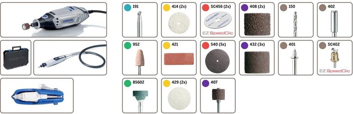 - 25 Dremel accessoires (inclusief EZ SpeedClic accessoires)