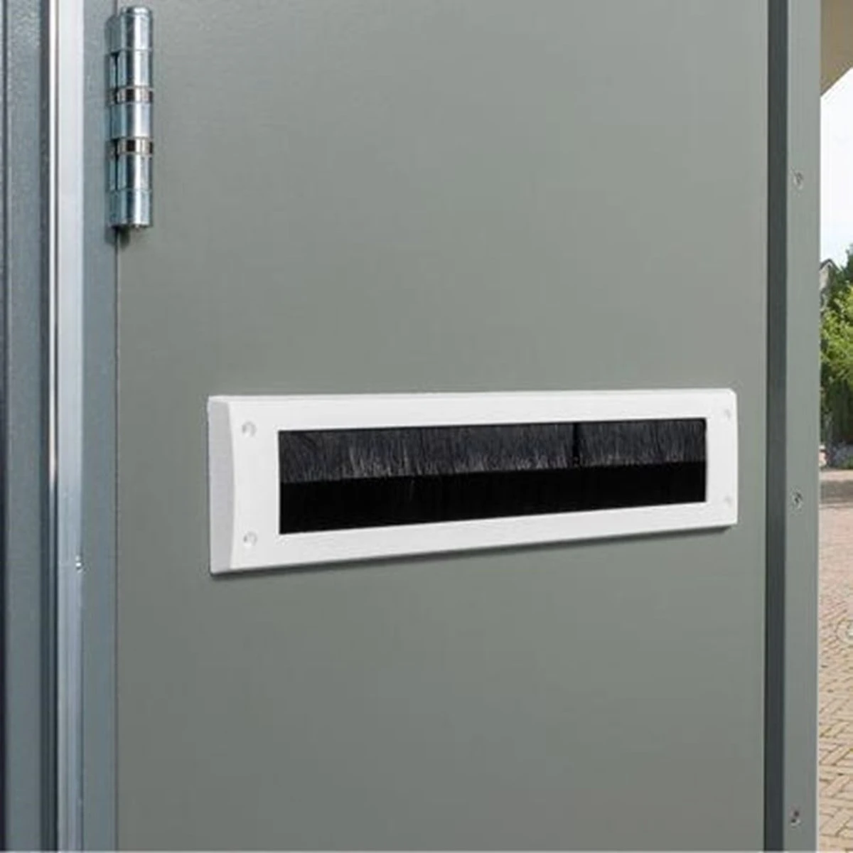 Kunststof frame, waarin twee nylon haarstrips zijn gemonteerd, dat zelfs bij het uitsteken van poststukken, kranten, folders e.d. voor blijvende afsluiting zorgt. De afmetingen voldoen aan de TNT-normen.