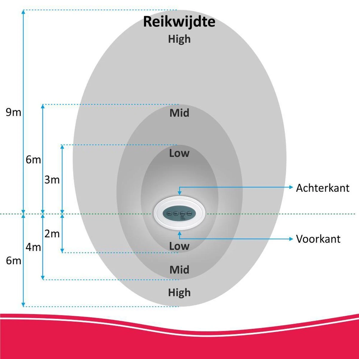 - Bereik van de sensor is instelbaar van 9 tot 16 meter.
