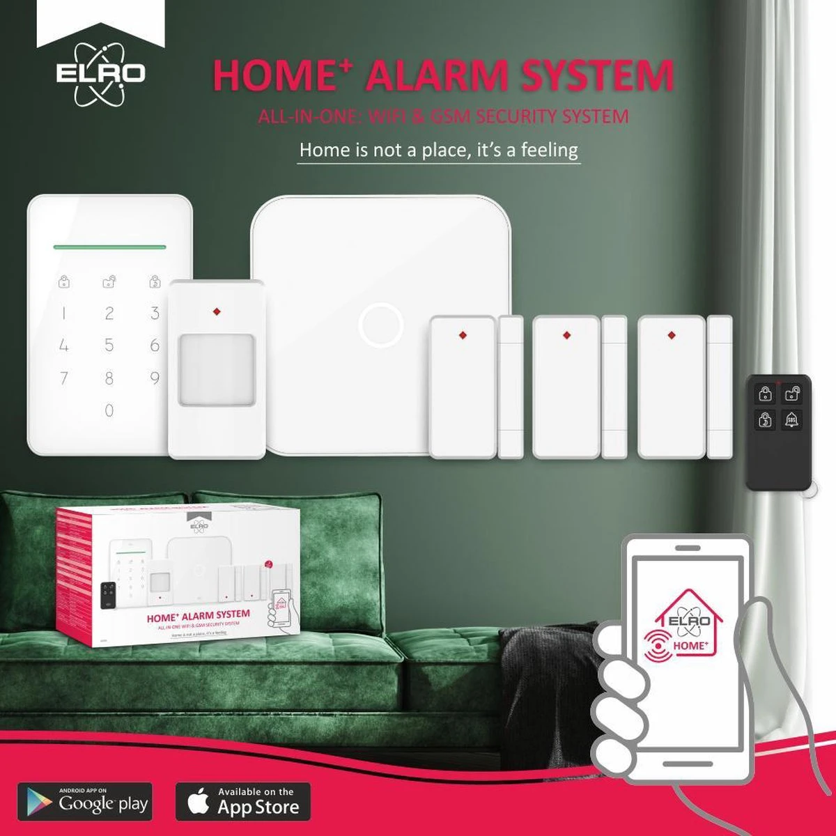 + Direct gealarmeerd door de gratis ELRO Home+ App (Wifi) of via SMS (GSM)