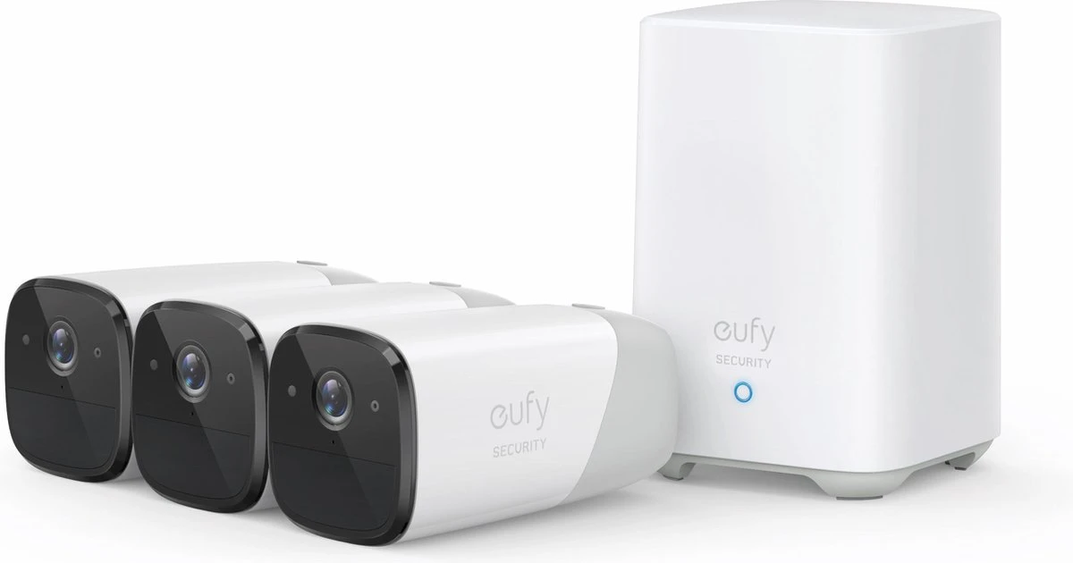 Deze set bestaat uit een basisstation en 3 Eufycam’s 2