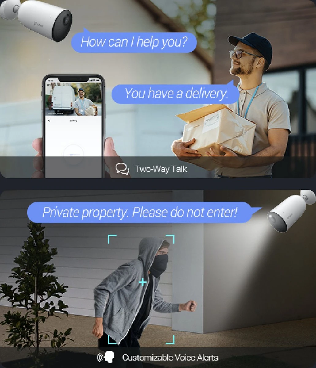 Beheer uw CB3 eenvoudig via de EZVIZ App. En wat nog beter is, u kunt de live-weergave met uw stem activeren met “Hey Google” of “Alexa” om op een groter scherm te zien wat er gebeurt.
