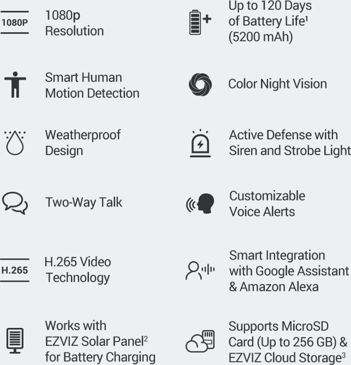 De EZVIZ CB3 is een uiterst gebruiksvriendelijke camera die krachtige prestaties levert voor buitenbeveiliging. Hij werkt continu tot 120 dagen op één volle volle batterij, en kan in principe overal in de buurt van uw huis worden gebruikt zonder ingewikkelde bedrading of dure installatiekosten. Het is een toegankelijke optie voor elk gezin dat een extra beschermingslaag nodig heeft.