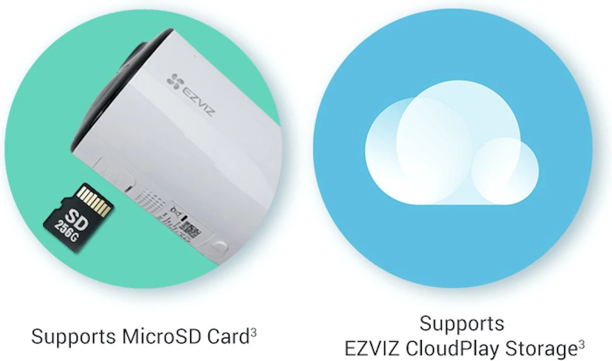 Zet uw opgenomen momenten vast op een lokale microSD-kaart van maximaal 256 GB, of geniet van extra gegevensbescherming door u te abonneren op EZVIZ CloudPlay voor volledig gecodeerde cloud-opslag.