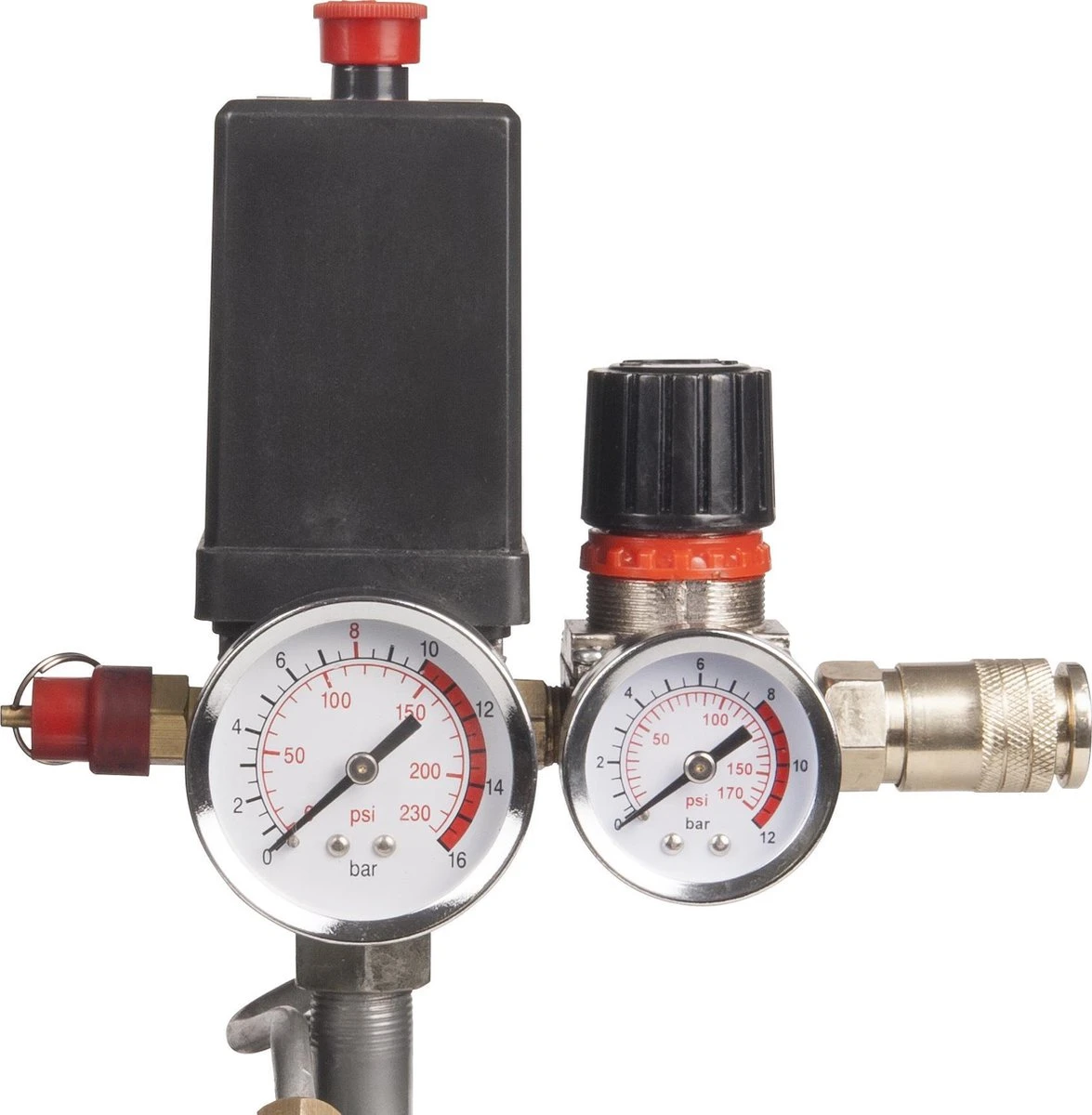- 2 manometers voor het aflezen van zowel tank- als uitlaatdruk