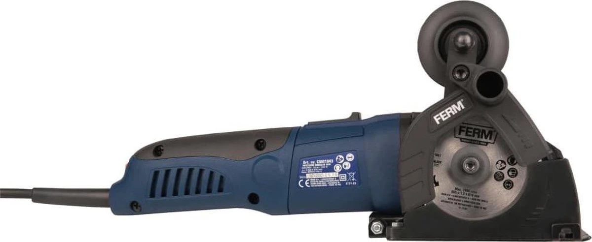 De machine is voorzien van een ergonomisch design met een slim vormgegeven handgreep, waardoor je veilig en comfortabel kunt werken met de CSM1043 van FERM. Het 3 meter lange snoer op de machine zorgt voor optimaal gebruikersgemak.