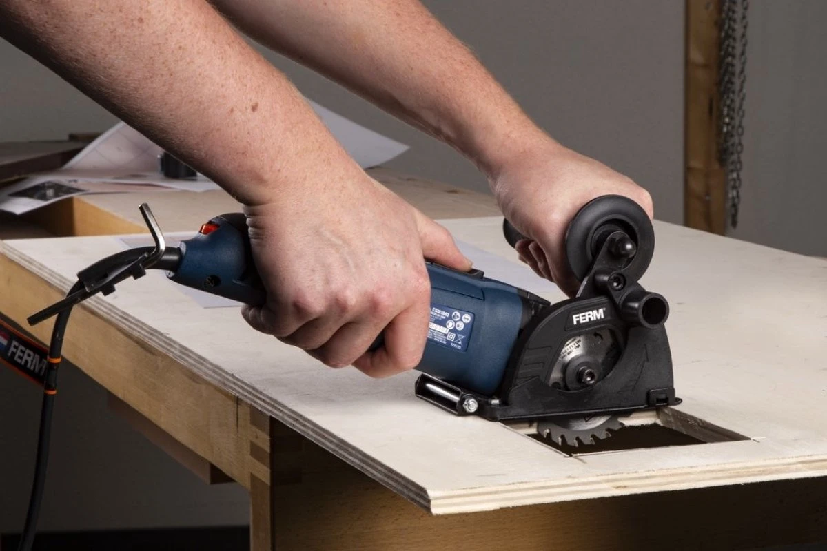 Deze FERM cirkelzaag is geschikt voor zaagwerkzaamheden in diverse soorten materialen, zoals bijvoorbeeld aluminium, laminaat, kunststof en tegels.