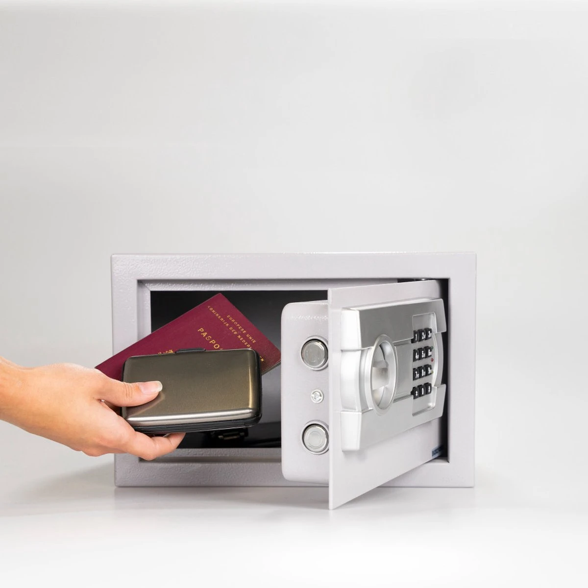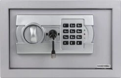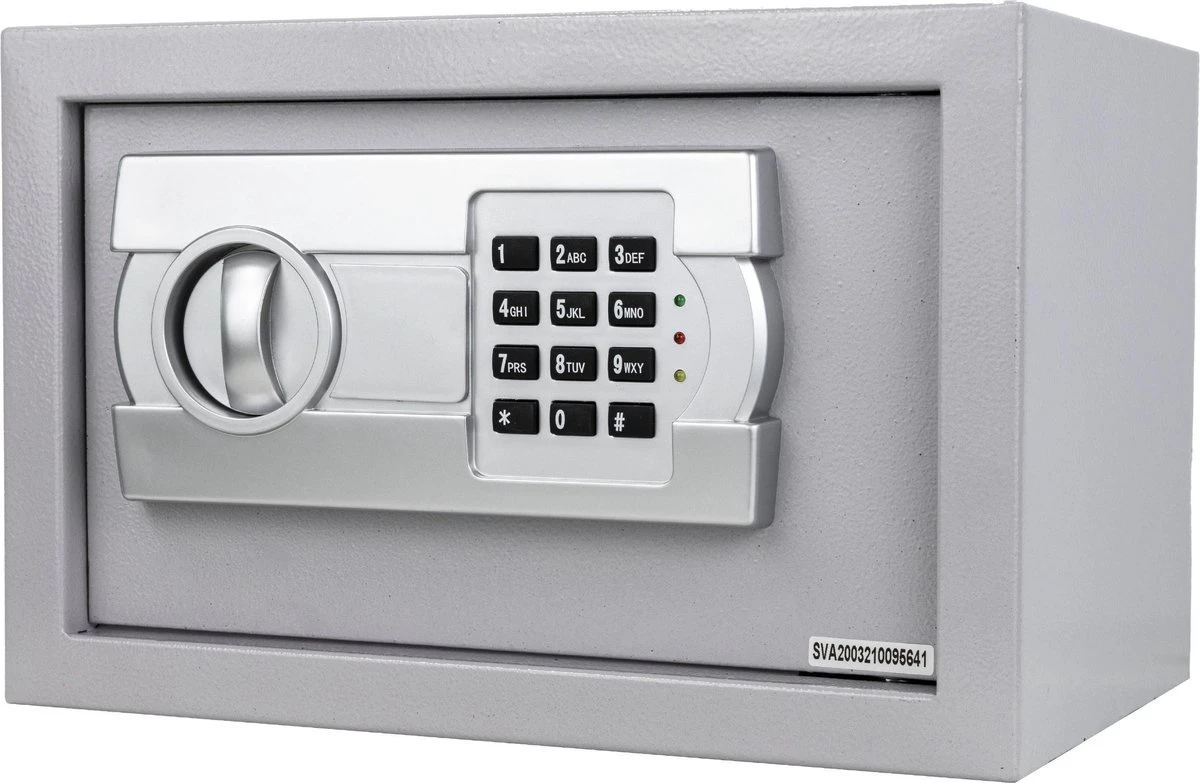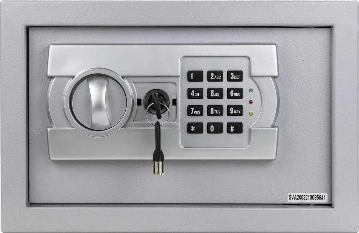 Compacte digitale kluis om al je waardevolle spullen in op te bergen. De kluis heeft een elektronisch cijferslot en is gemaakt van stevig, inbraakveilig staal. Je kunt hem op een handige plek in huis zetten of ophangen aan de muur. Ideaal voor kleinere kostbaarheden zoals sieraden, geld en belangrijke documenten. De cijfercode kies je zelf en is op elk moment te wijzigen. Voor de zekerheid zijn twee noodsleutels inbegrepen.