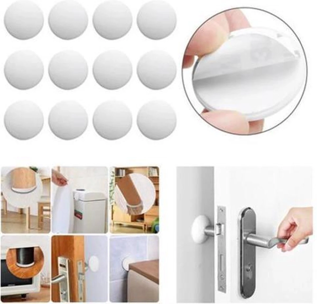 Met deze handige deurstoppers beschermt U de muren tegen schade binnen uw huis. De deurbeschermers kunnen makkelijk geplaatst worden, met de zelfklevende plakstrip aan de achterkant. Door de sterke kleeflaag kunnen de deurstoppers gemakkelijk op verschillende oppervlakten geplaatst worden.