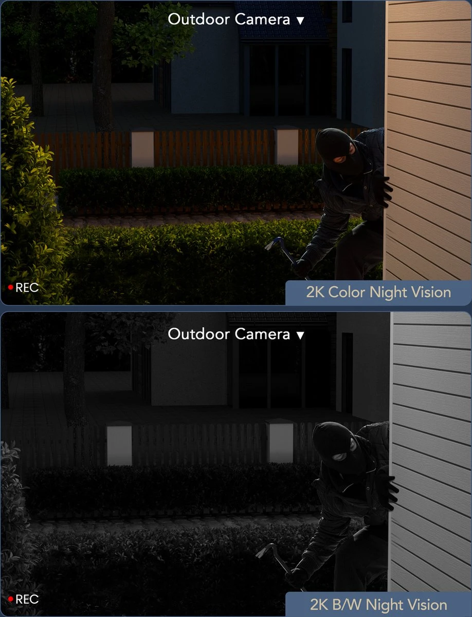 Wanneer iemand uw huis nadert, detecteert en volgt de buitencamera met ingebouwde IR-portretherkenningstechnologie hun bewegingen en stuurt vervolgens een realtime waarschuwing naar uw telefoon. Met de “praat”-functie kun je vreemden afschrikken die proberen je huis binnen te komen. Veiligheid is altijd bij u.