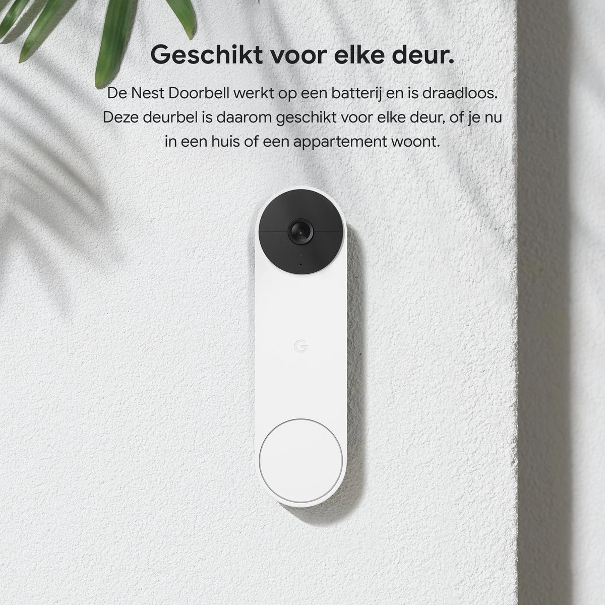 De Nest Doorbell werkt op batterijvoeding en is draadloos. Deze deurbel is daarom geschikt voor bijna elke deur, of je nu in een huis of een appartement woont. En je kunt hem zelf in een paar makkelijke stappen installeren.