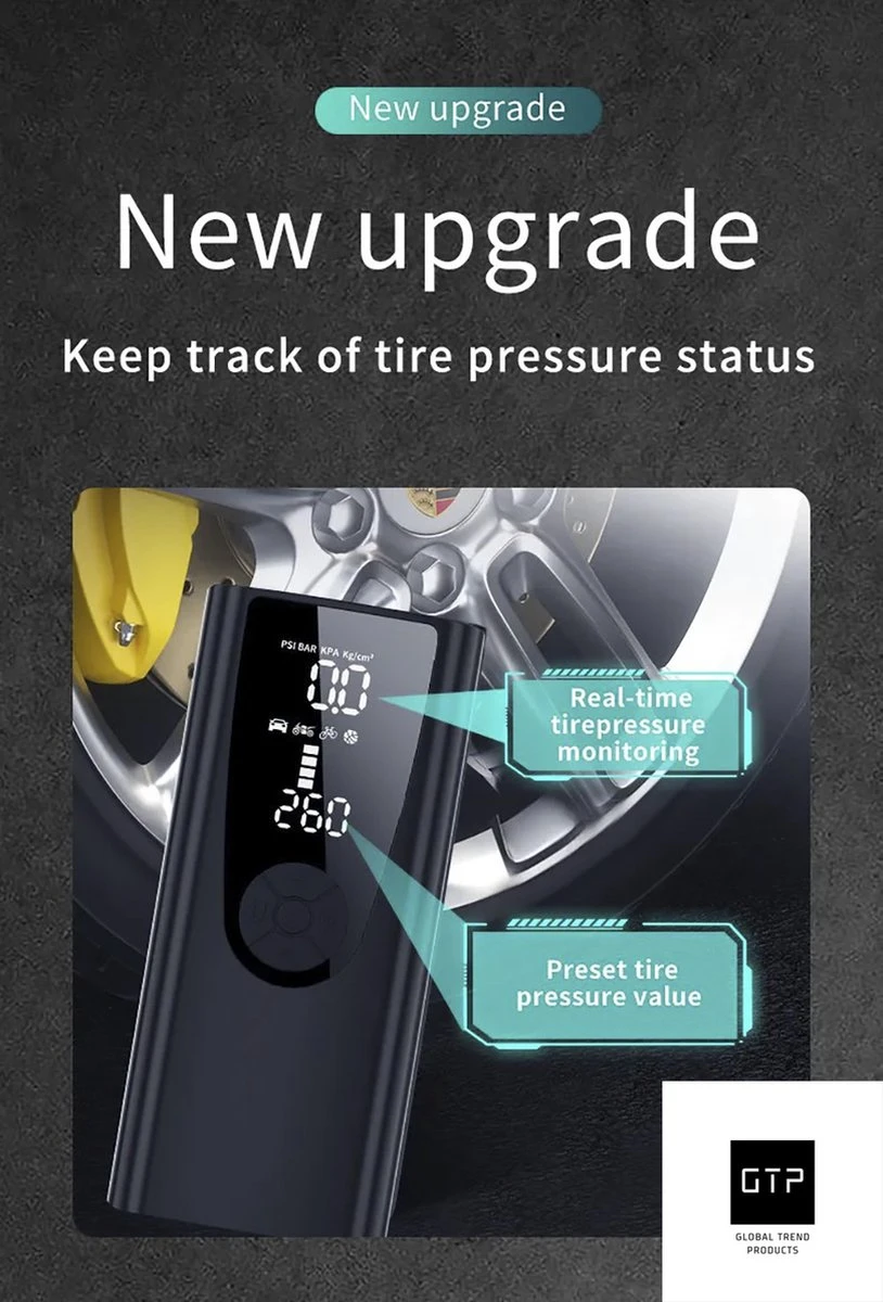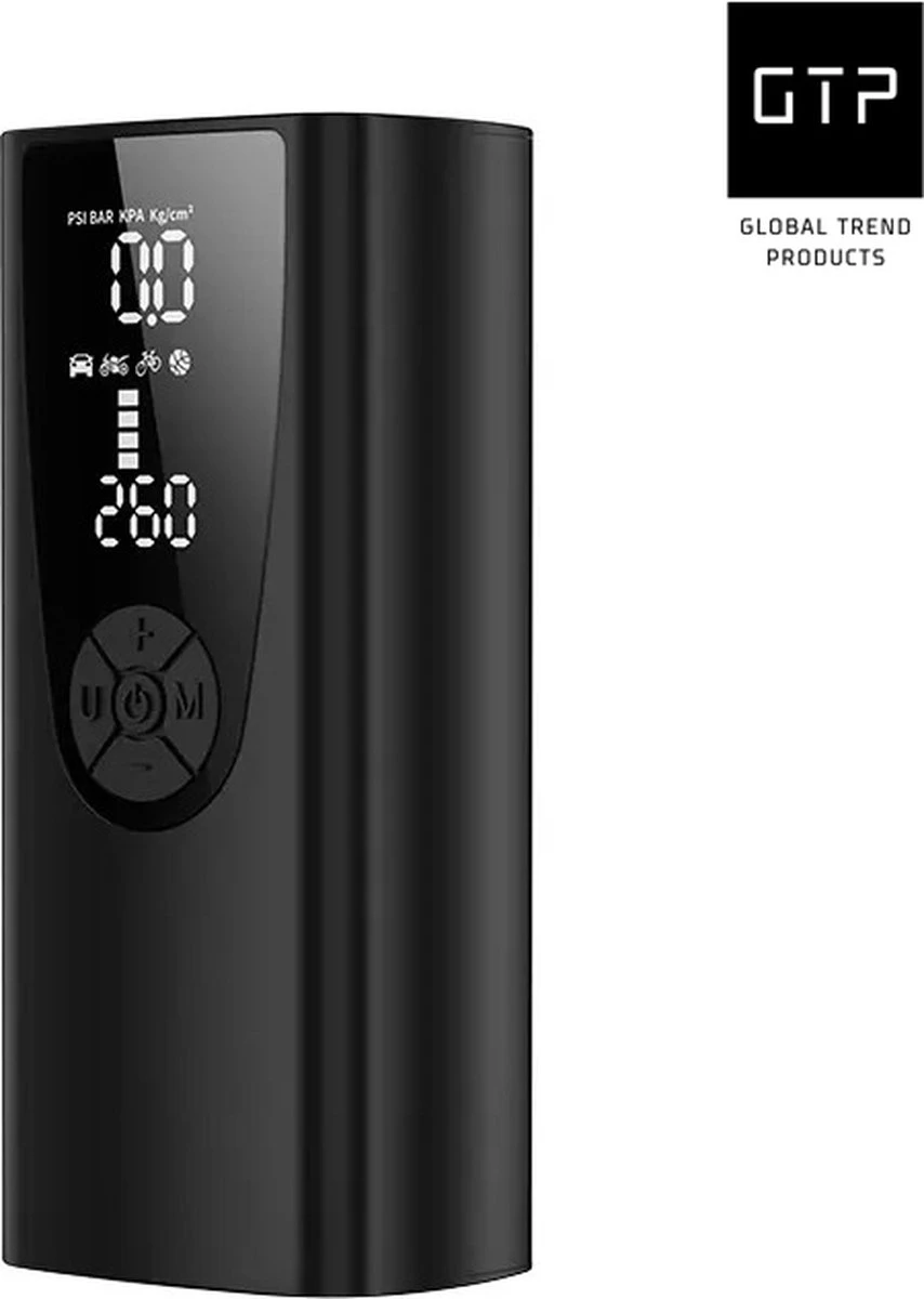 De GTP draagbare luchtcompressor is een van de beste multifunctionele luchtcompressors op de markt. De draagbare luchtcompressor zorgt ervoor dat je altijd de juiste bandenspanning hebt en is geschikt voor de fiets, motor, auto en ballen. De GTP luchtcompressor wordt met een dustbag geleverd, naast de functie van oppompen heeft het ook de functies om als powerbank, zaklamp en bandenspanningsmeter gebruikt te worden.