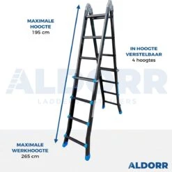 ALDORR Home Telescopische Vouwladder 6,20 Meter – Met Stabilisatievoet En Soft Closing – Aluminium