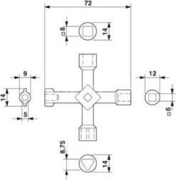 Universele 4 Weg Sleutel- Schakelkastsleutel- Driehoek Sleutel – Multitool- Zwart