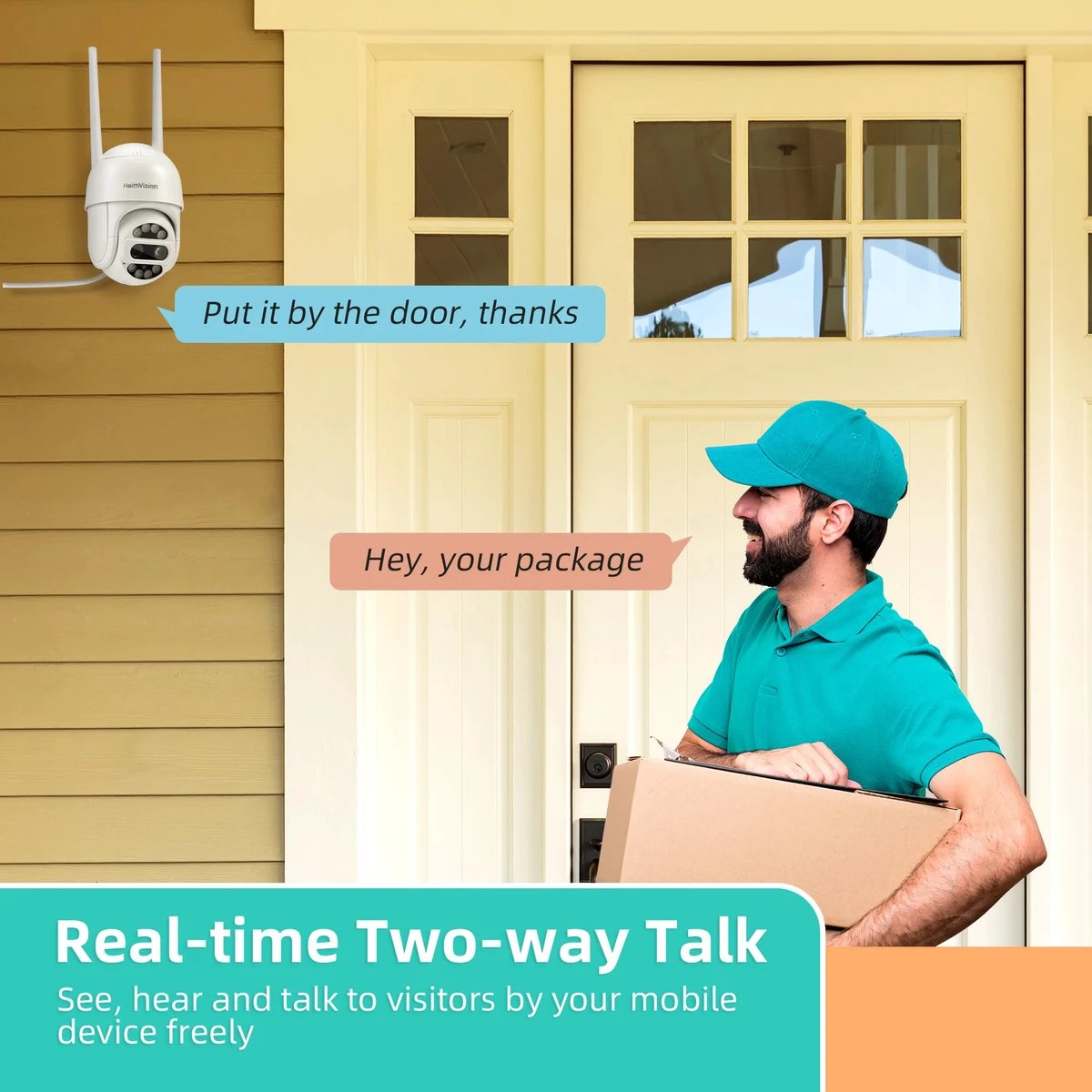 2-Way Audio & Sound/Lights Alarm: HeimVision Wi-Fi Wireless Camera ondersteunt live kijken, real-time praten met bezoekers waar u ook bent. Bovendien zijn het geluid, het blauwe en rode lichtalarm erg handig voor u om te waarschuwen en te rijden weg de verdachte persoon om uw eigendom te verlaten.